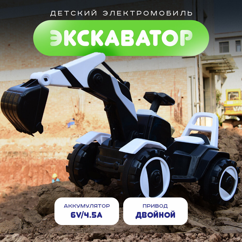 Электромобиль детский "Экскаватор", для улицы и дома, двойной привод на аккумуляторе черный интересное: