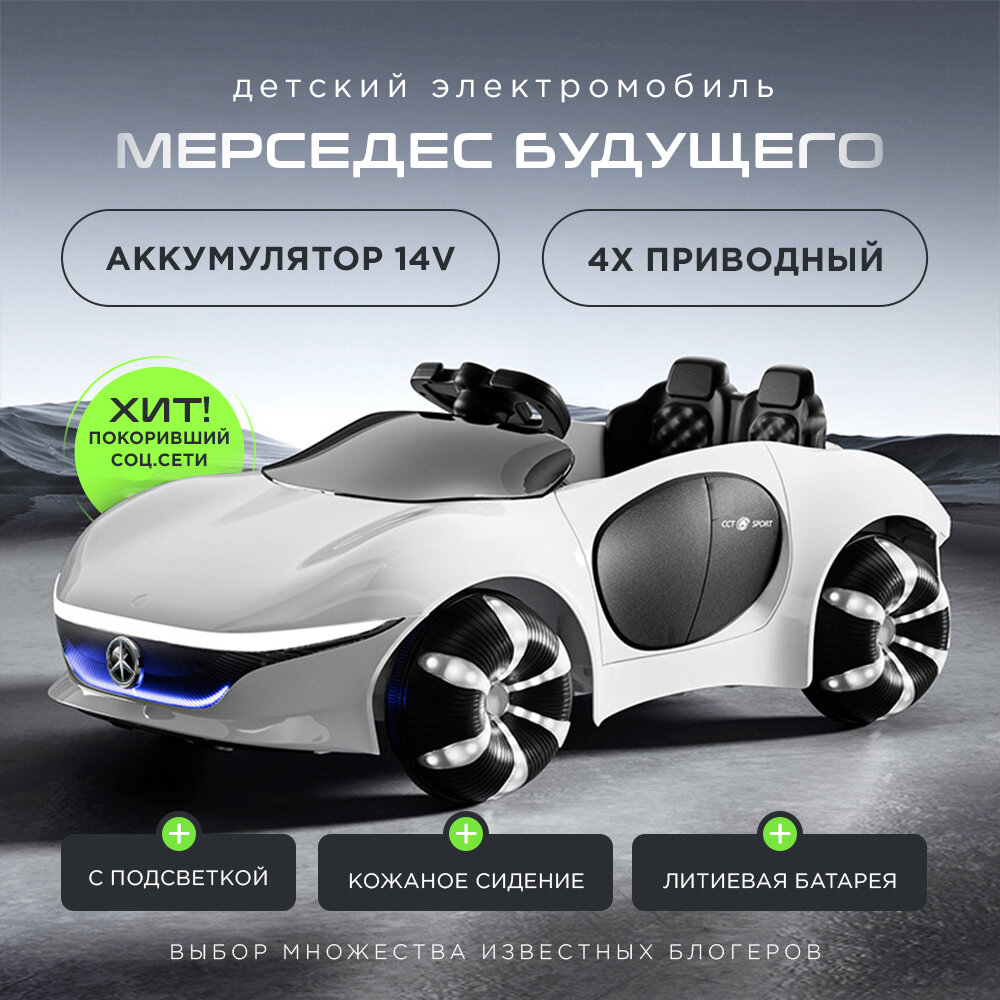 Купить Электромобиль детский "Мерседес" с пультом ДУ белый, 4wd, подсветка колес, кожаное сиденье, большая батарея 12v7