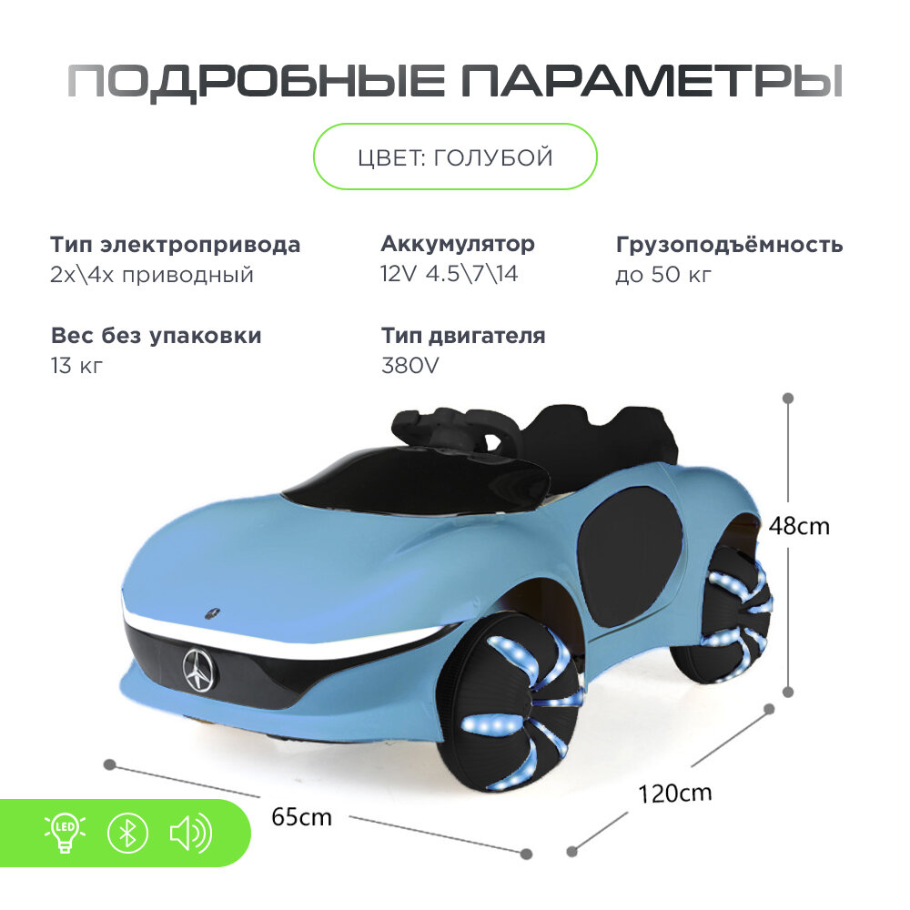 Электромобиль детский "Мерседес" с пультом ДУ голубо, двойной привод, батарея 12v4,5 интересное: