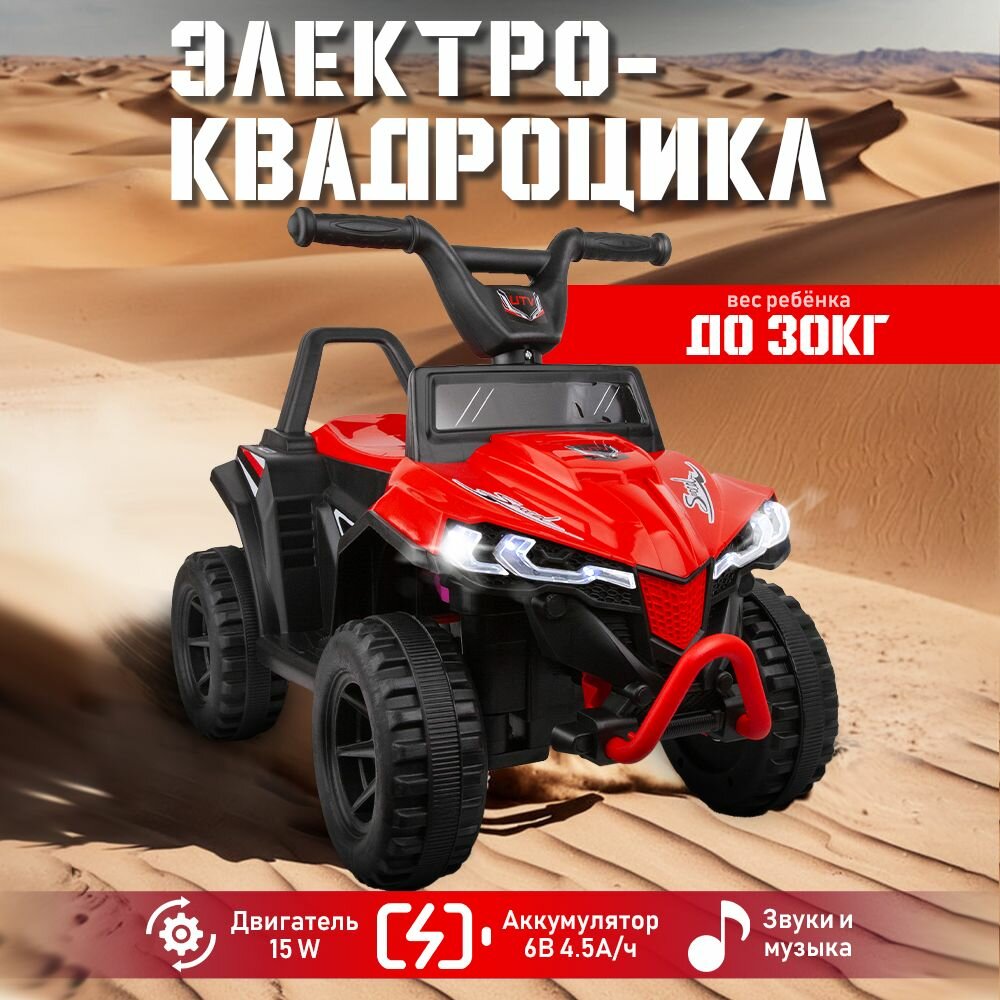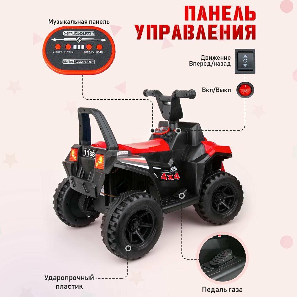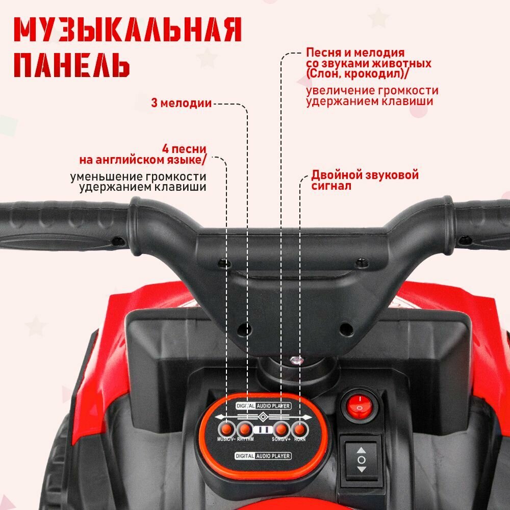 Электромобиль детский, квадроцикл на аккумуляторе, со светом, звуком, красный интересное: