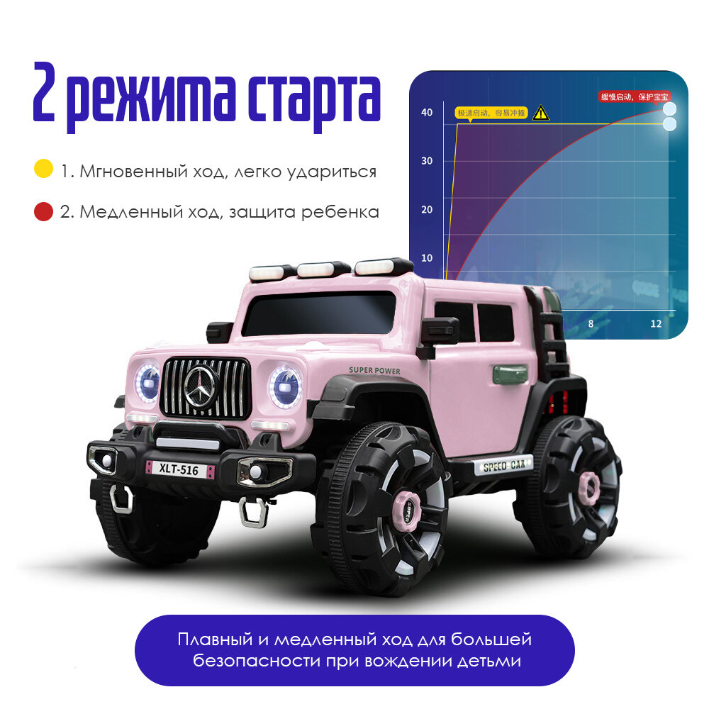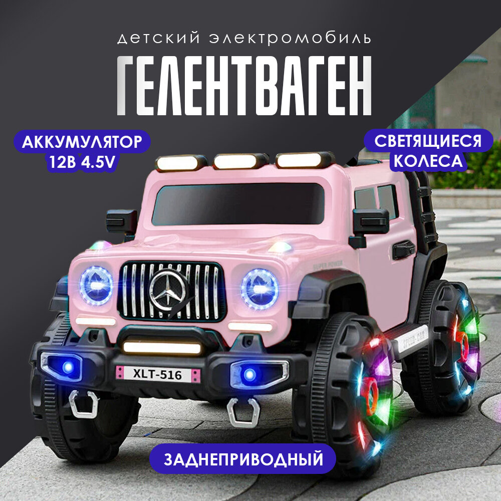 Электромобиль детский "Гелик" с пультом ДУ, двухместный розовый стандартная конфигурация, 12v4.5, двойной привод интересное: