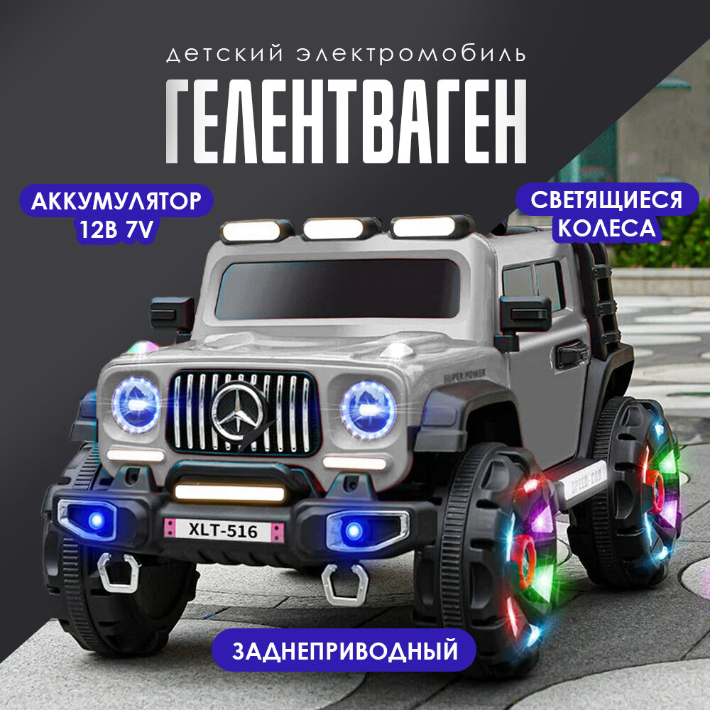 Электромобиль детский "Гелик" с пультом ДУ, двухместный черный средняя конфигурация, 12v7, двойной привод