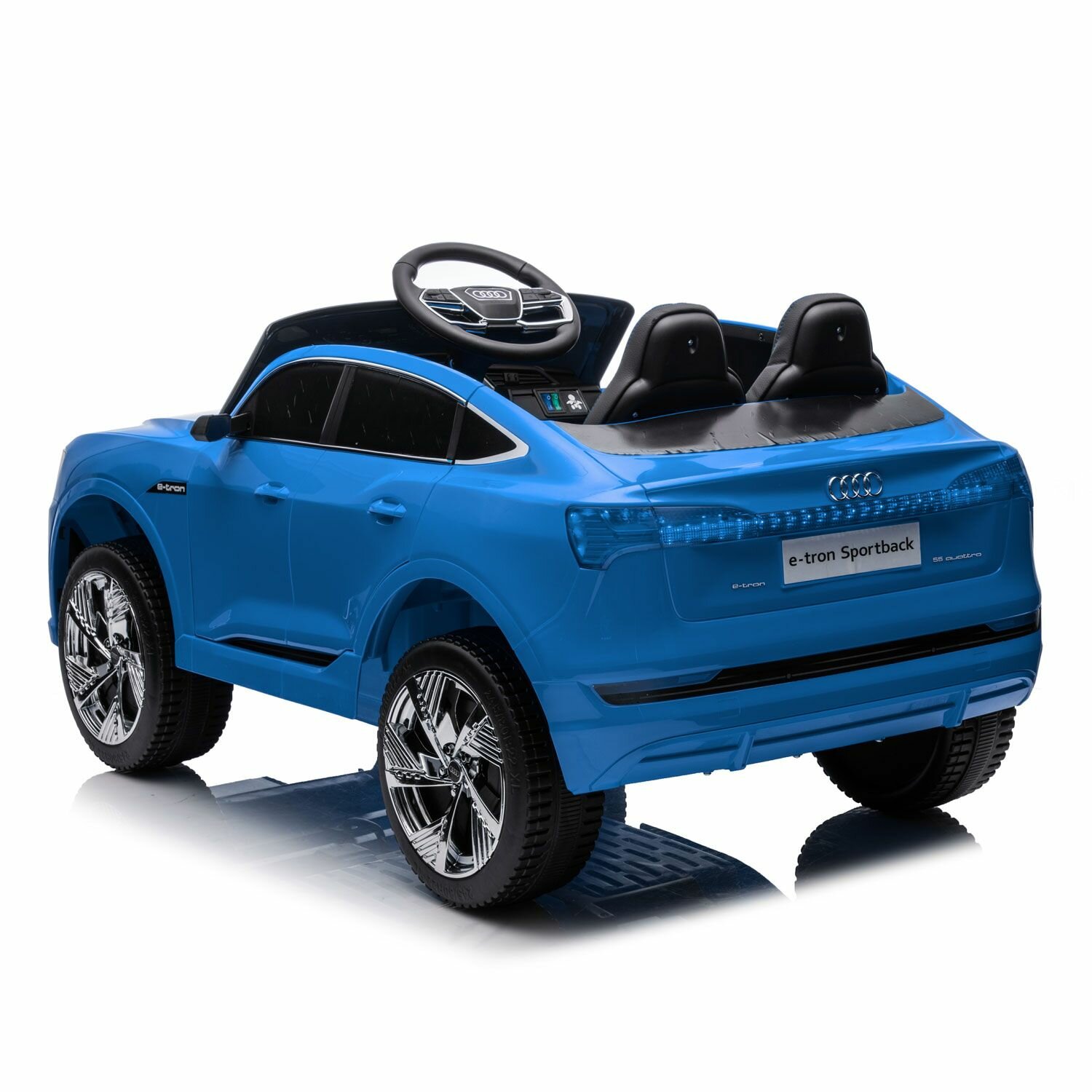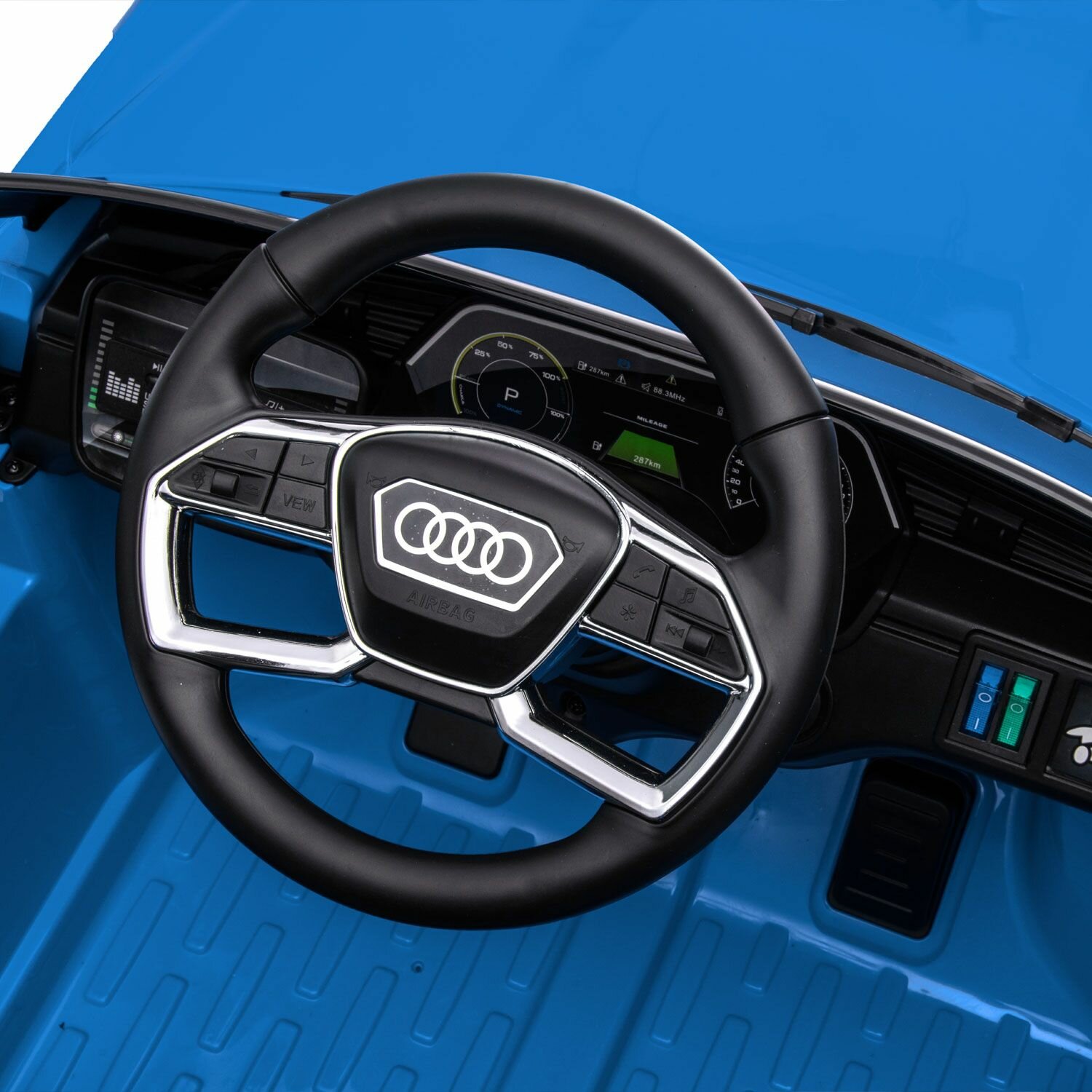 Электромобиль детский на радиоуправлении Tommy Audi AU-3 синий, свет, звук интересное: