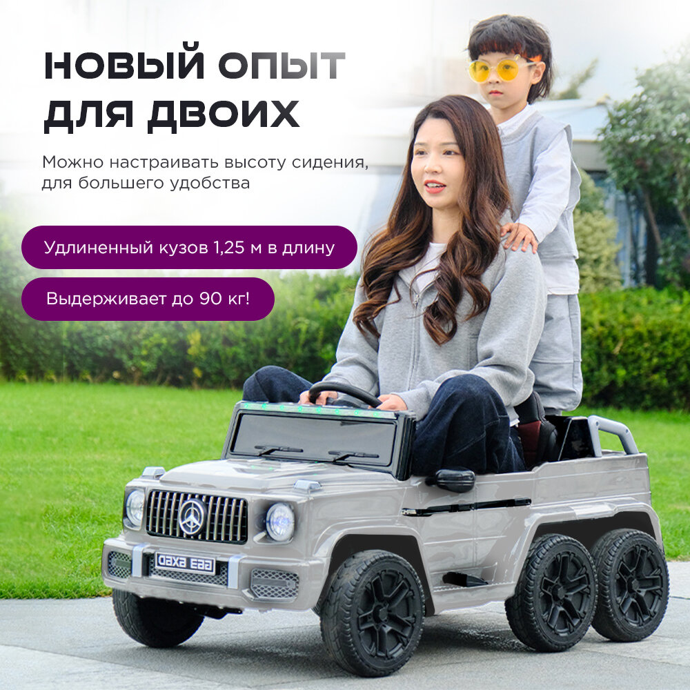Детский электромобиль Big G с шестью колесами, с дистанционным управлением, белый, кожаное сиденье12v7 интересное: