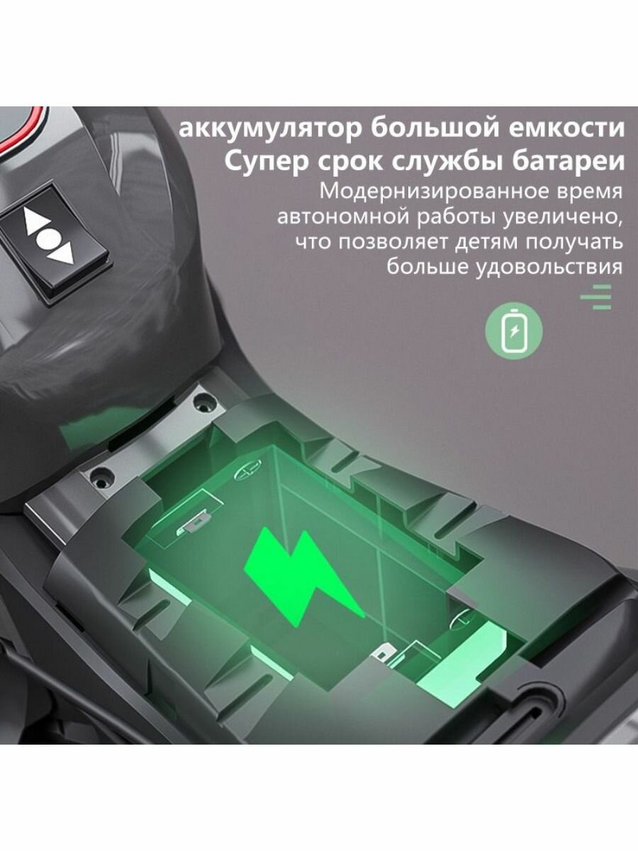 | Особенности | переключение скоростей / Звуковые эффекты / Индикация зарядки аккумулятора / Музыкальные колонки / Мягкие сиденья |