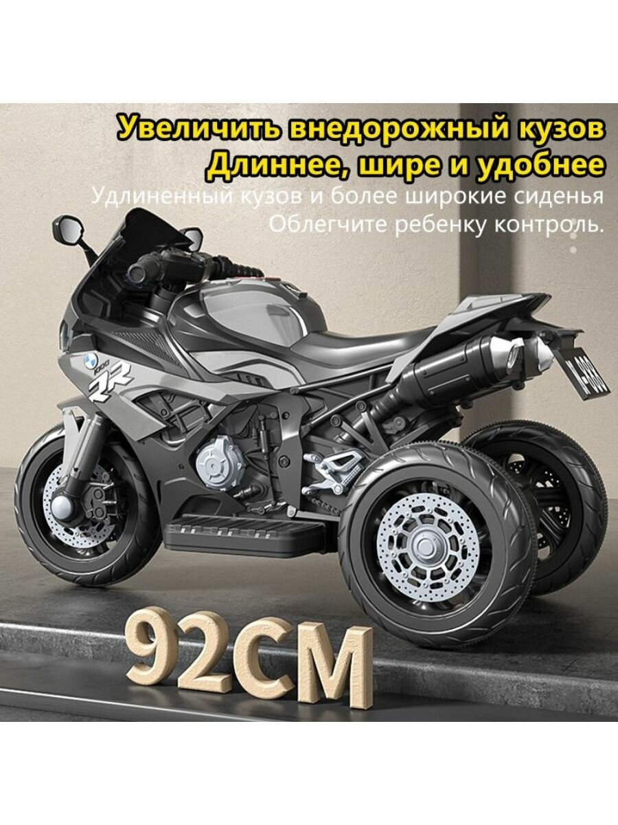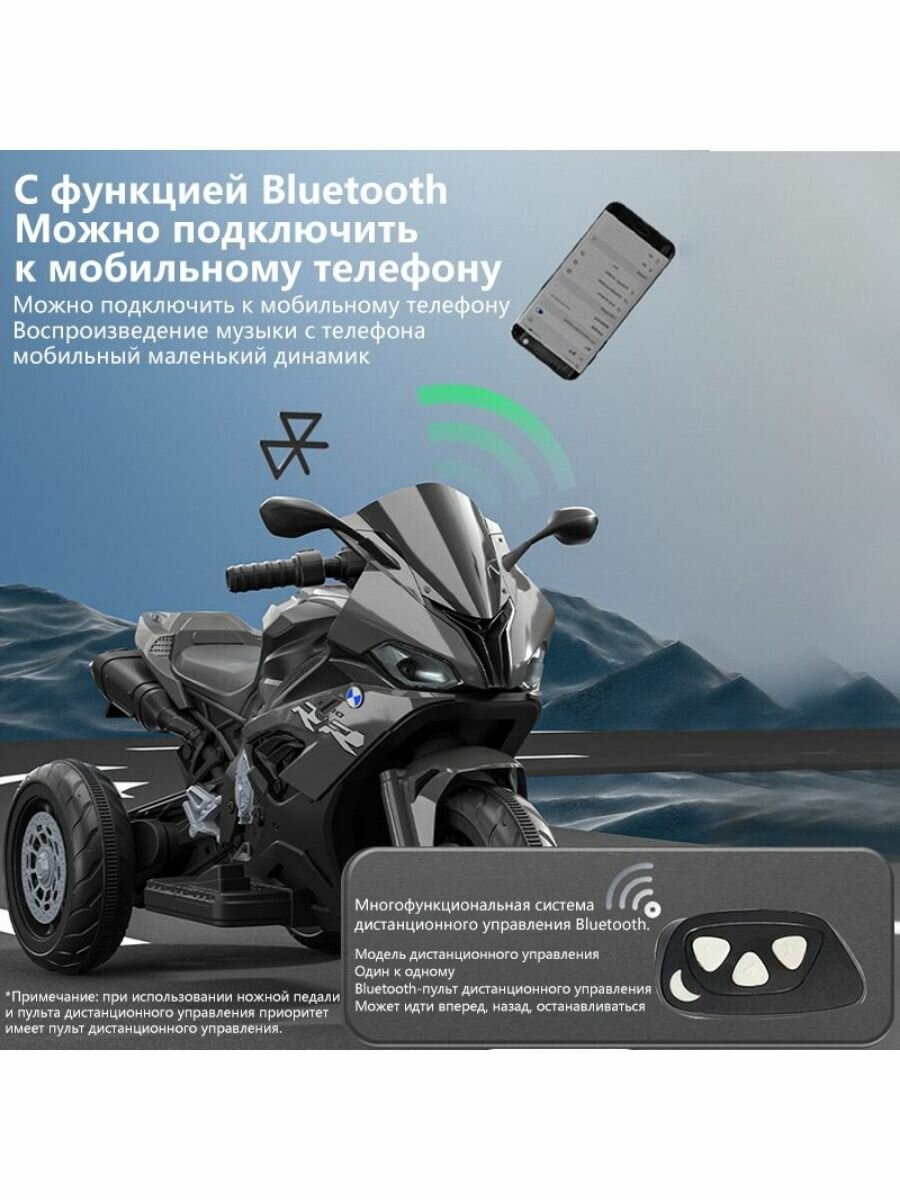 Купить Детский электромотоцикл, Большой аккумулятор с двойным приводом на 7А + музыка по Bluetooth + кожаное сиденье