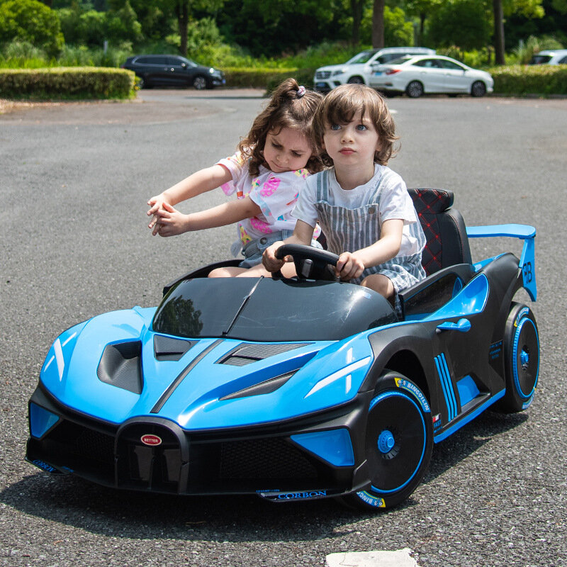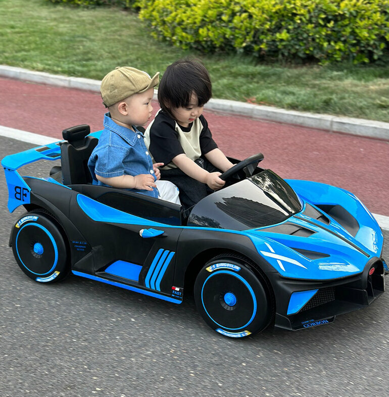 Купить Детский электромобиль "TurboRacer X2" – двухместный, с пультом ДУ, LED-подсветкой, ремнями безопасности (синий 12V7A)