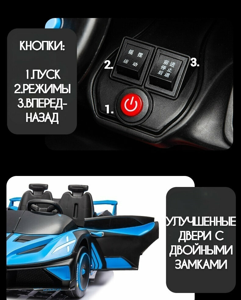 Детский электромобиль "TurboRacer X2" – двухместный, с пультом ДУ, LED-подсветкой, ремнями безопасности (синий 12V7A) интересное: