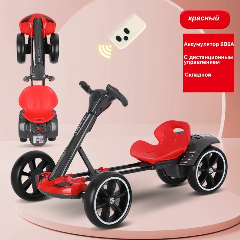 Детский четырехколесный электромобиль SMT-yaobei мотор 20w складной для мальчиков и девочек 6V6ah красный интересное: