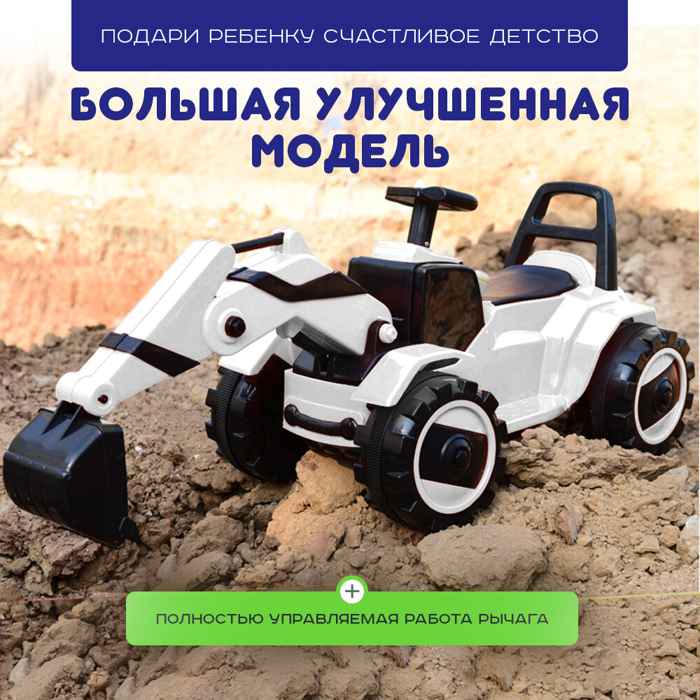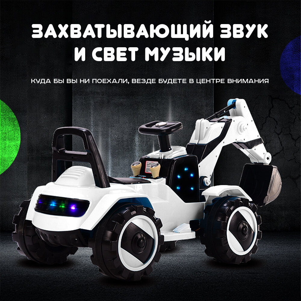 Электромобиль детский "Экскаватор", подсветка и музыка, двойной привод на аккумуляторе белый интересное: