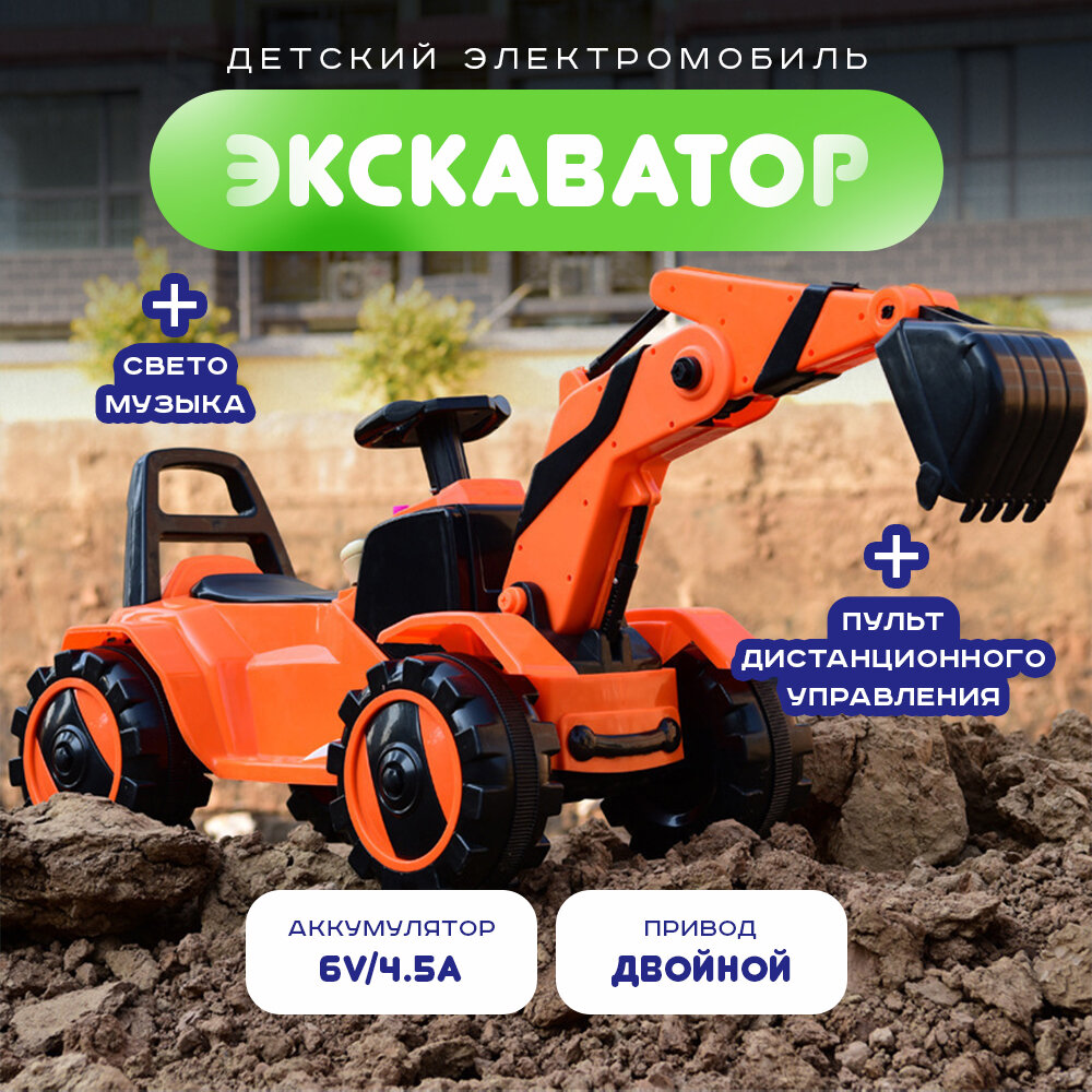 Электромобиль детский "Экскаватор" с пультом ДУ, для улицы и дома, двойной привод на аккумуляторе оранжевый интересное: