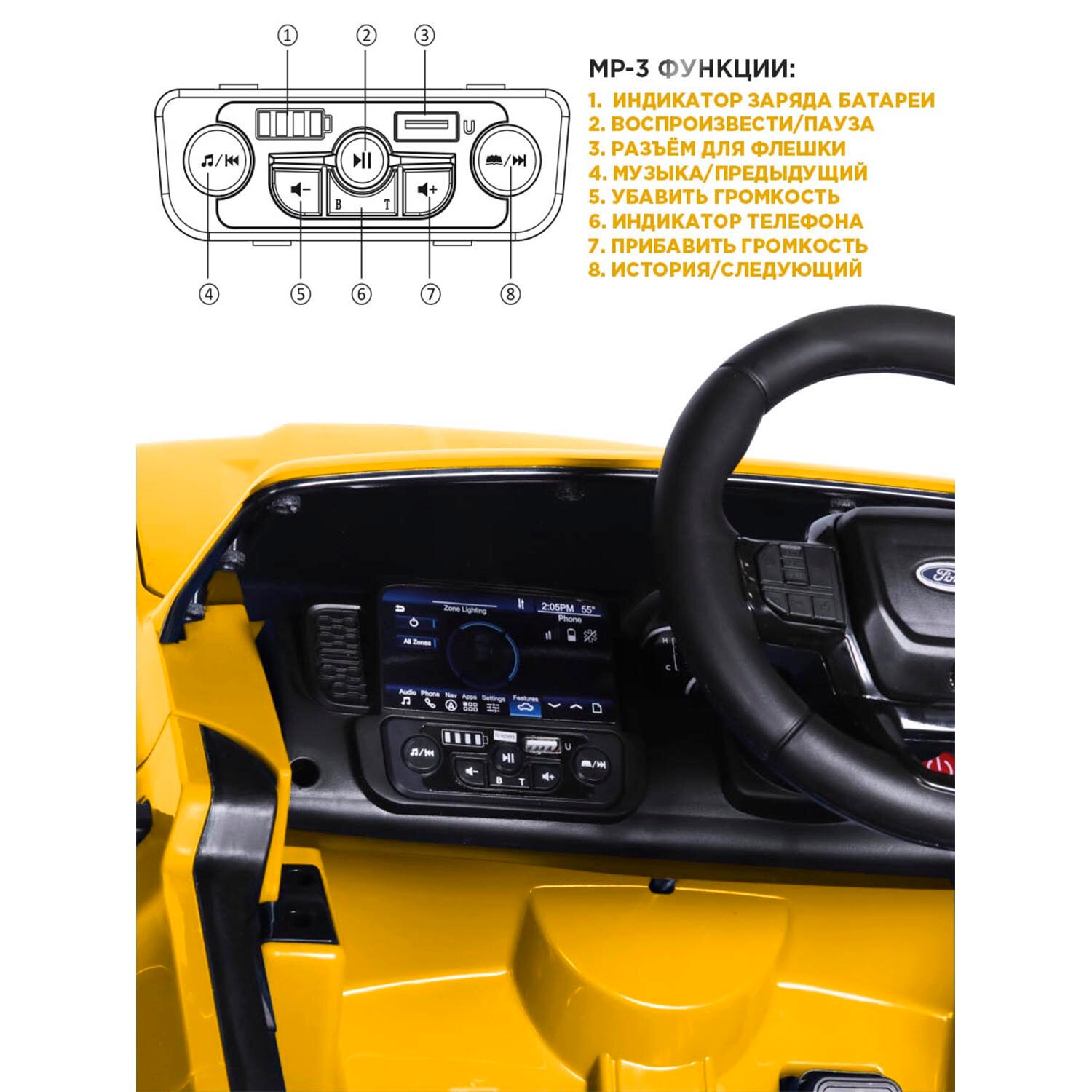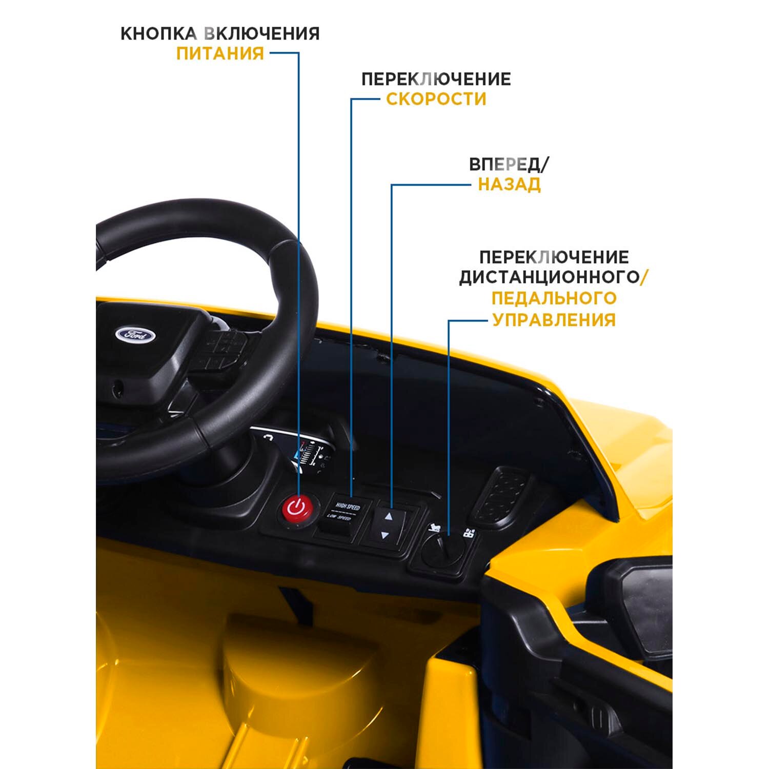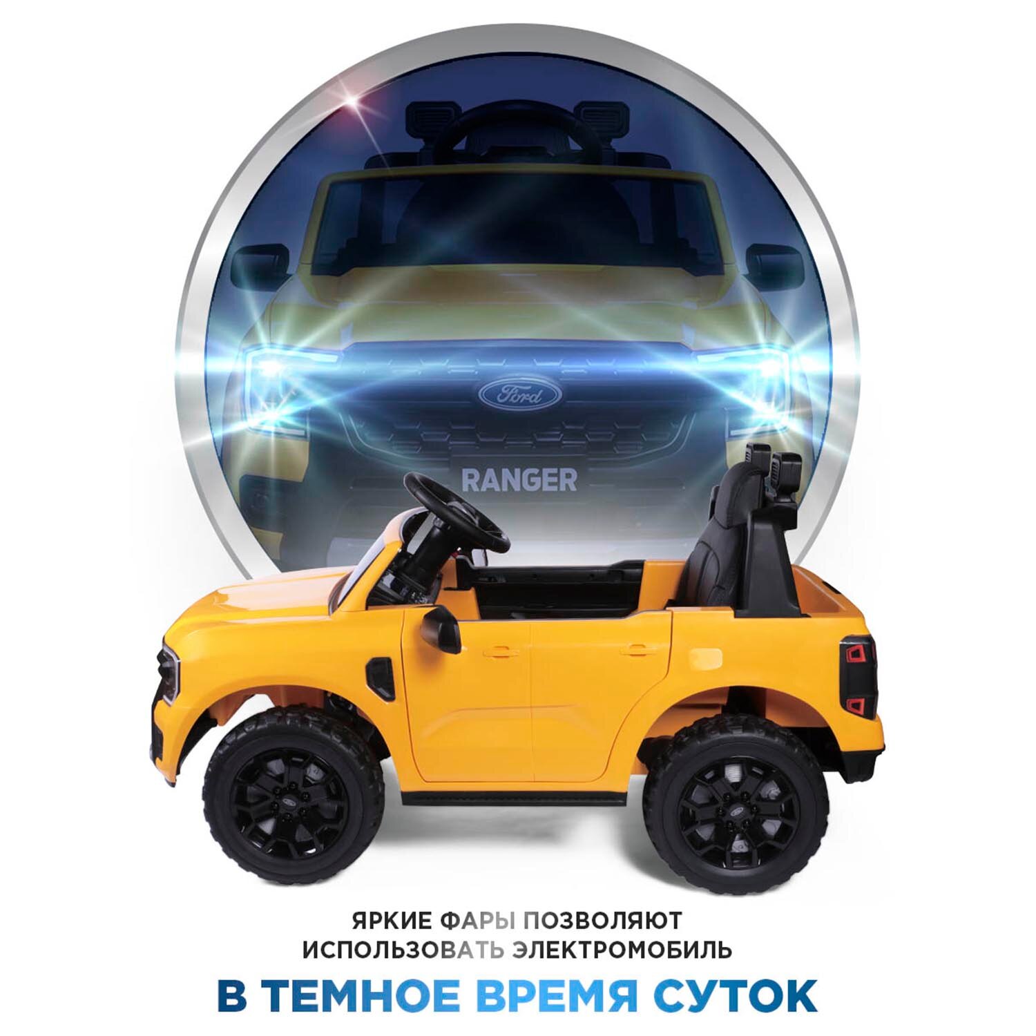 СохранитьЭлектромобиль Babycare "Ford Ranger", для детей, задний ход, до 5км/ч, желтый, 12В/24Ач интересное: