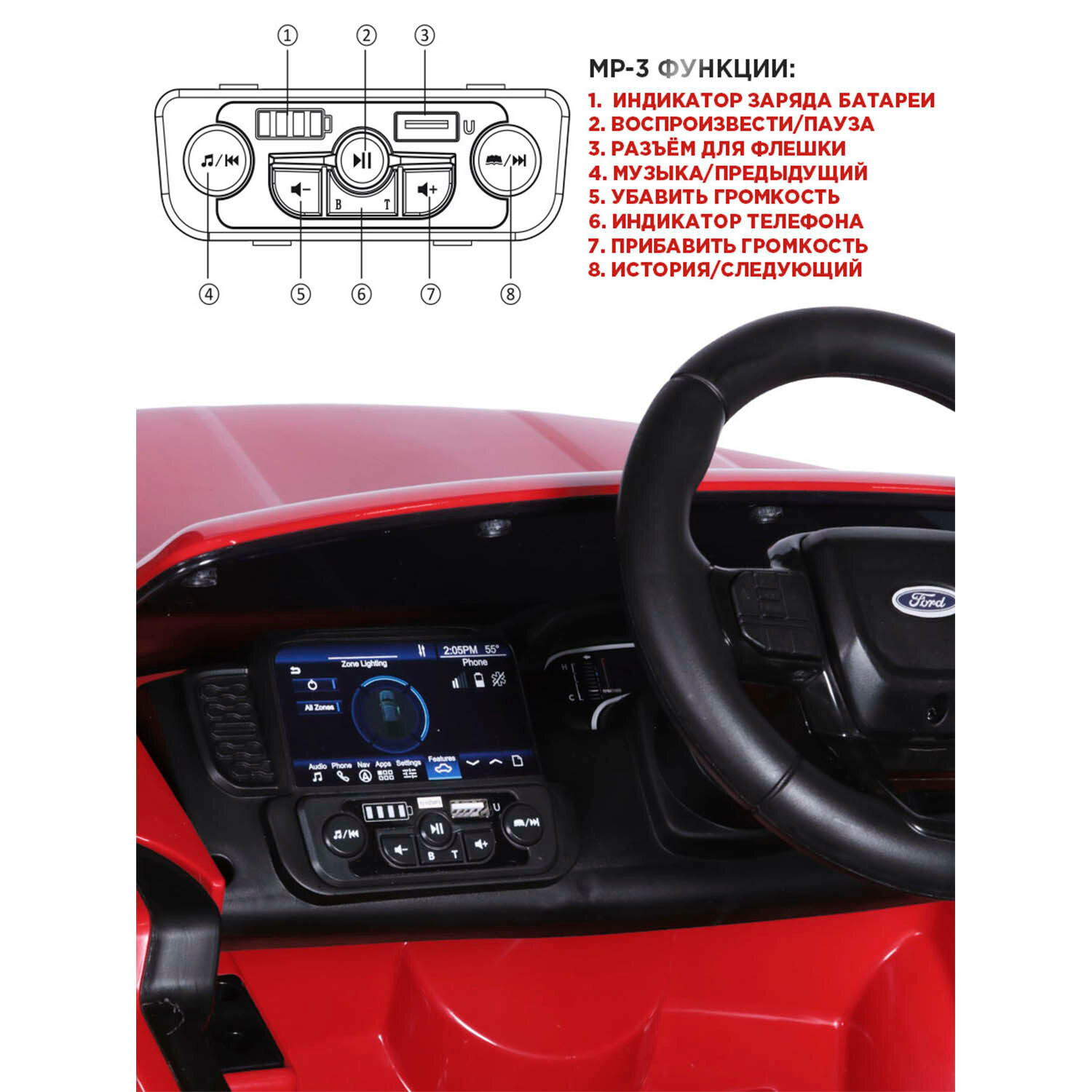 | Опции | MP3 / USB-вход / светящиеся фары |