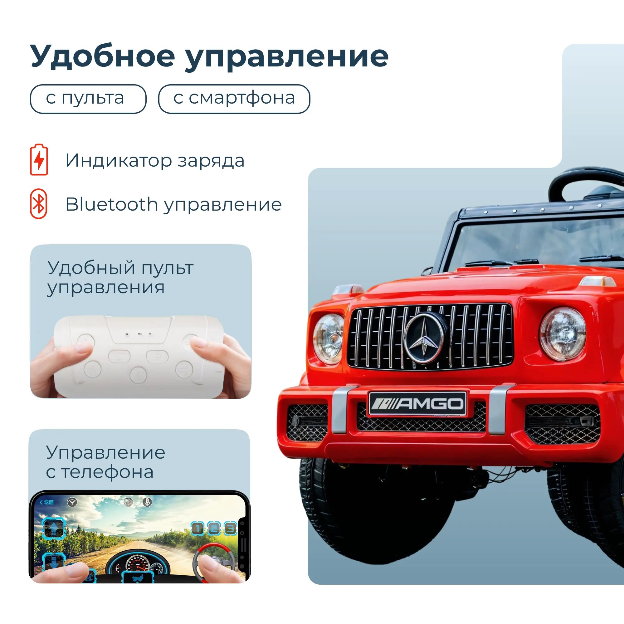 | Особенности | двухместный / задний ход / индикатор заряда / плавный ход / радиоуправление |