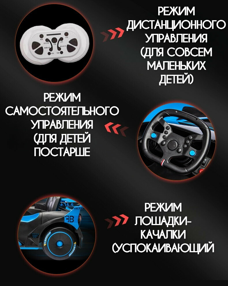 | Особенности | двухместный / индикатор заряда / на аккумуляторе / открываются дверцы / плавный ход / радиоуправление / управление со смартфона/планшета |