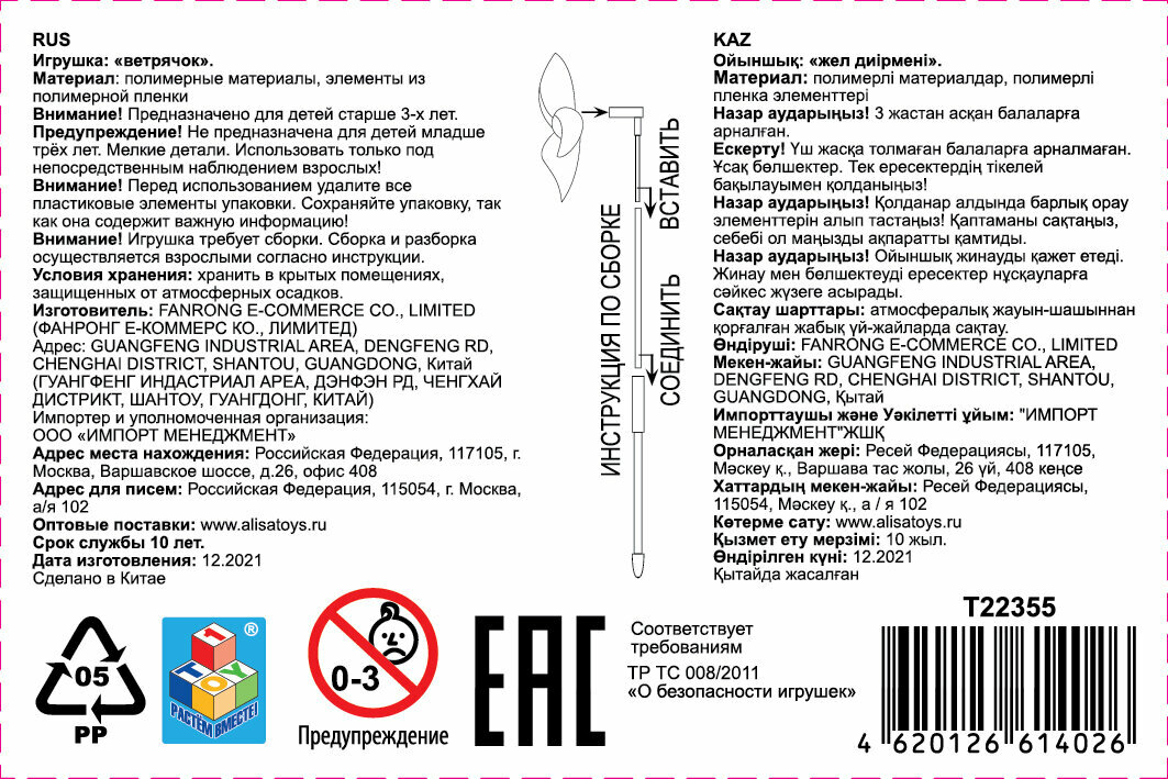 Купить Ветрячок 46 см 1TOY игрушка ветерок детский вертушка, ветряк, игрушки для улицы и сада