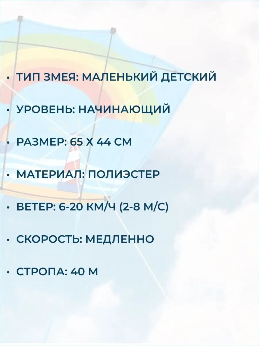| Подробная комплектация | воздушный змей; транспортировочный чехол; инструкция. |