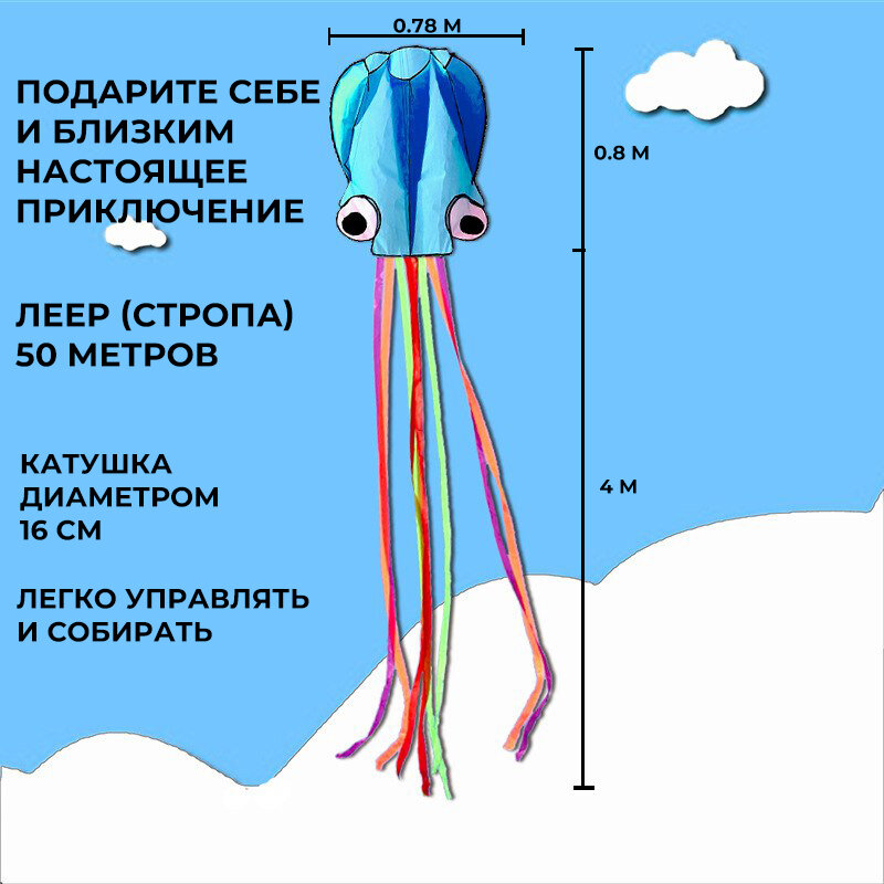 Воздушный змей "Осьминог", парафойлы, нейлон, 50 см, голубой интересное: