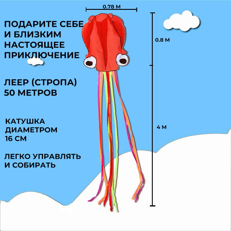 Воздушный змей "Осьминог", парафойлы, нейлон, 50 см, красный интересное: