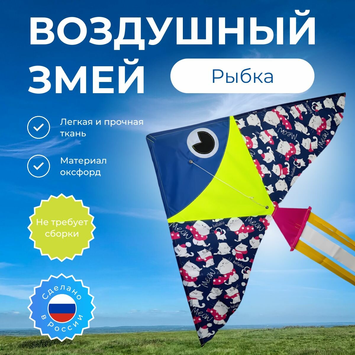 Воздушный змей "Рыбка" (котики) 110х65см интересное: