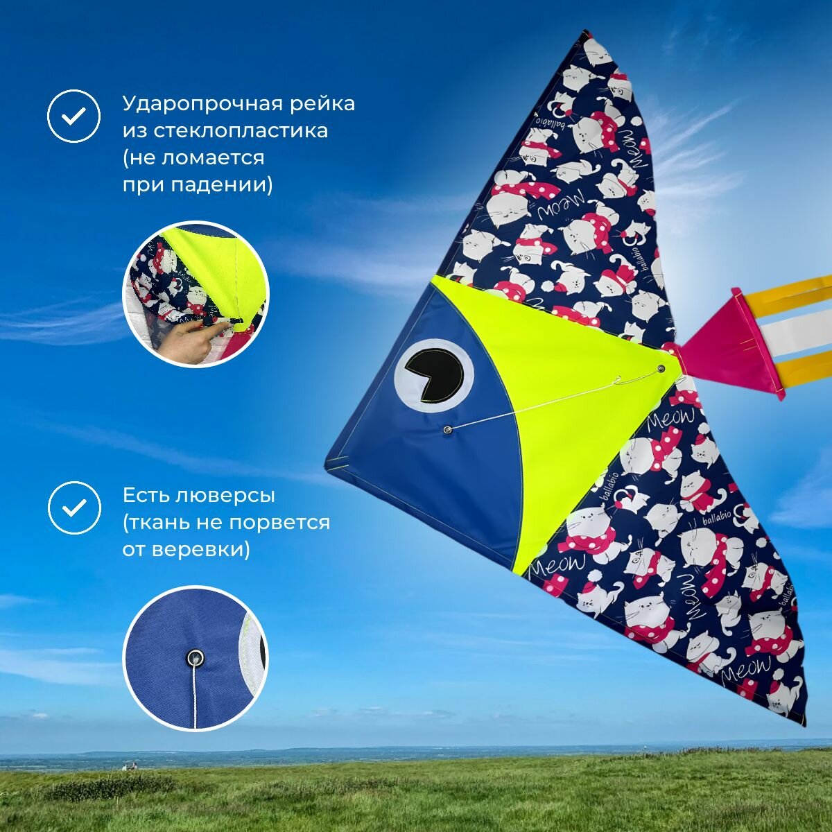 Купить Воздушный змей "Рыбка" (котики) 110х65см