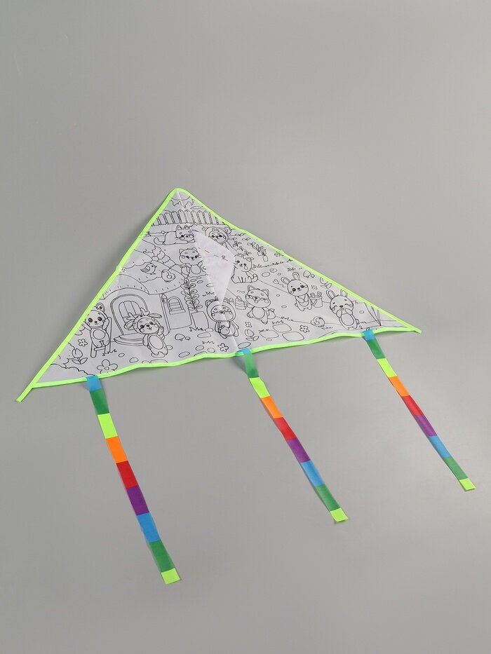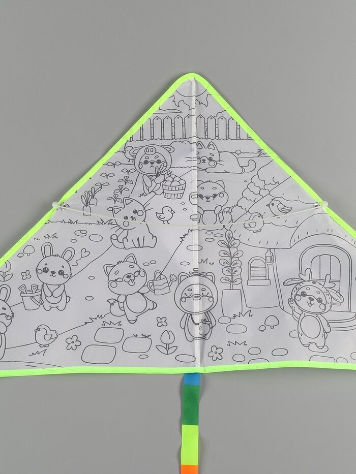 Купить Воздушный змей - раскраска "Зверятки", 80 см, 6 фломастеров
