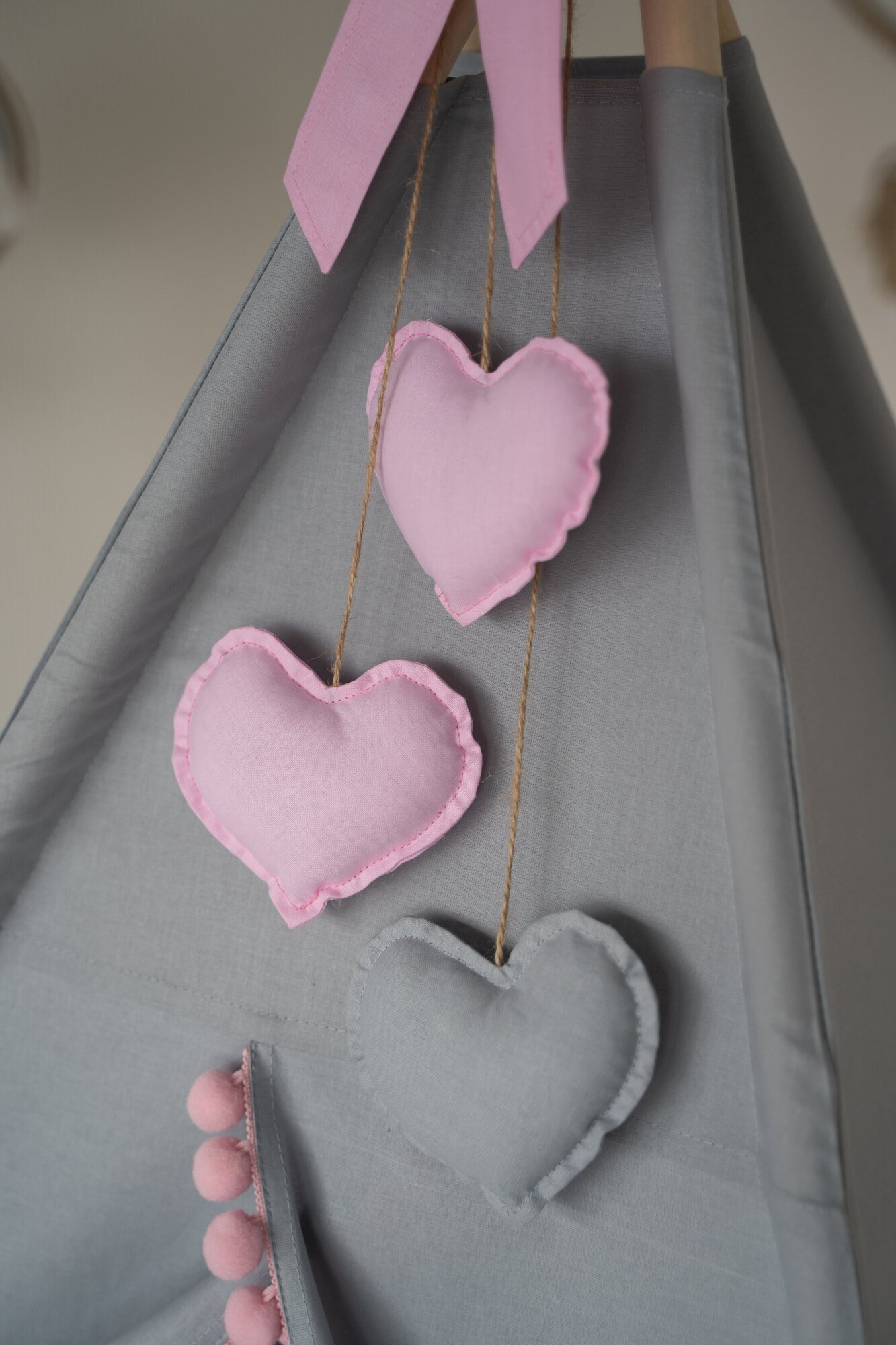 Купить Вигвам детский с ковриком, окошком , подушкой и антискладывателем серый с сердечками