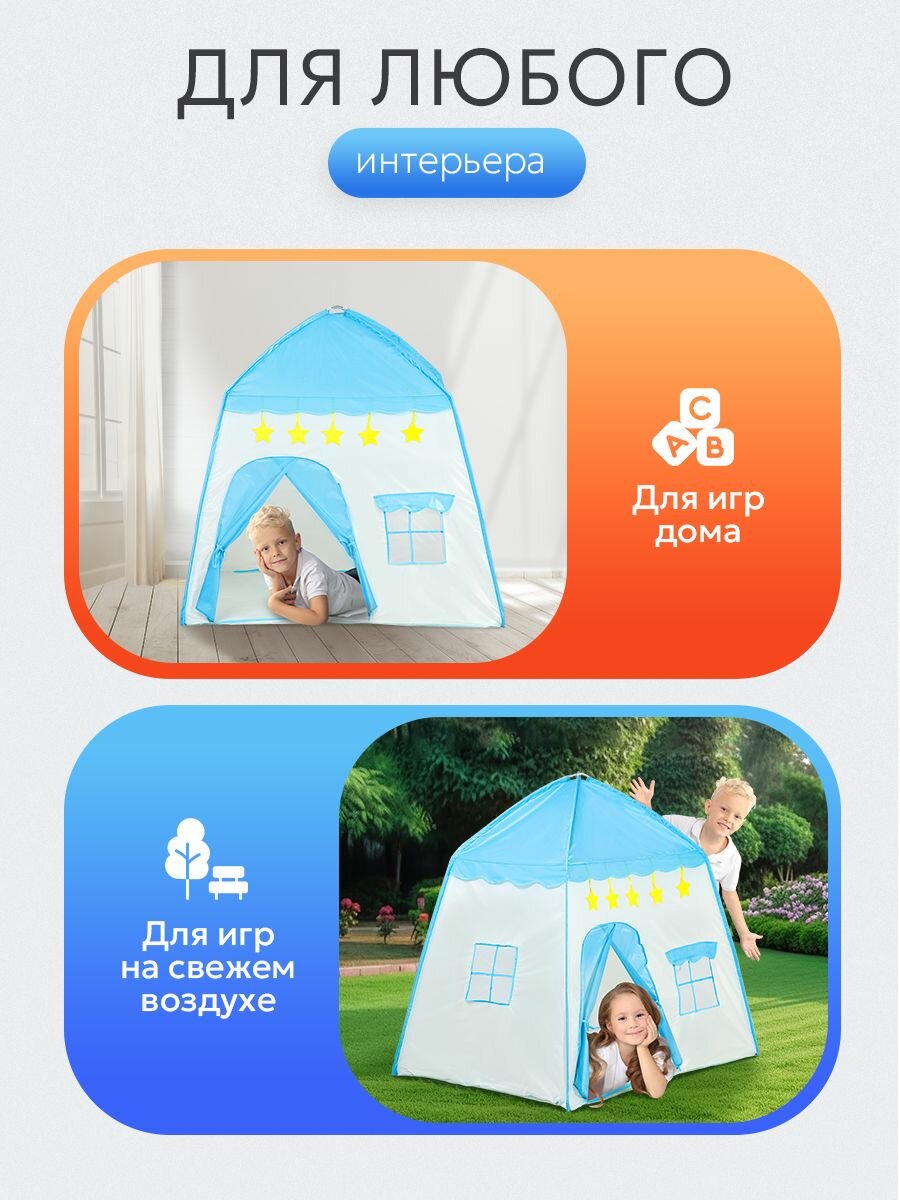 Купить Палатка детская игровая (в сумке) 130х100х130 см. Домик шатер для детей, голубой. Артикул SMYQ07-B