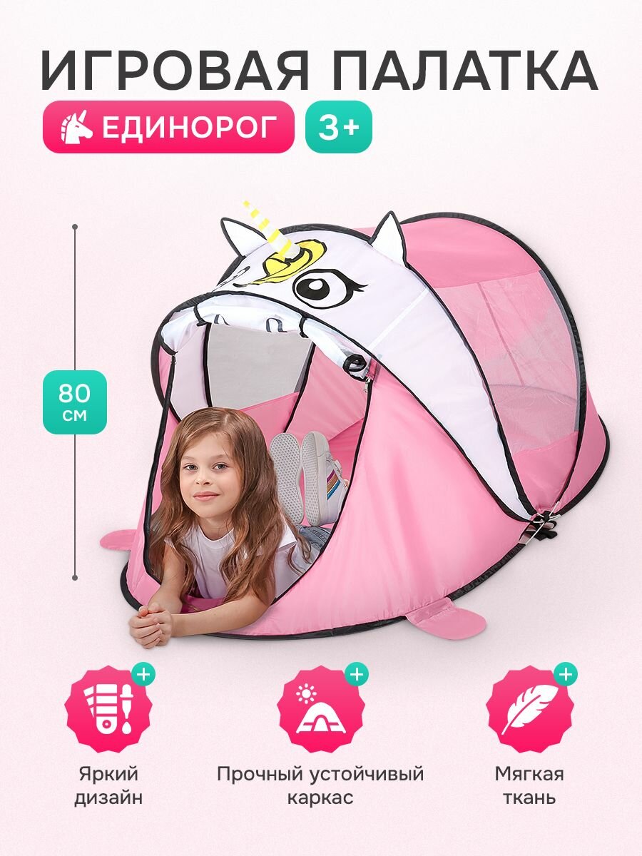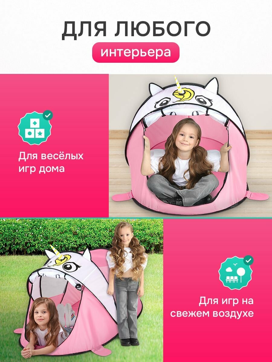СохранитьПалатка детская игровая (в сумке) "Единорожка" 182х100х80 см. Домик шатер для детей. Артикул SMYQ31 интересное: