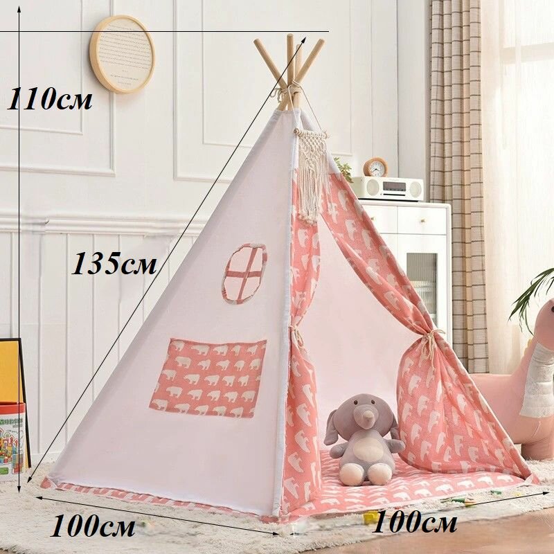 Купить Детская игровая палатка- вигвам розовая с ковриком для детей с 9 месяцев