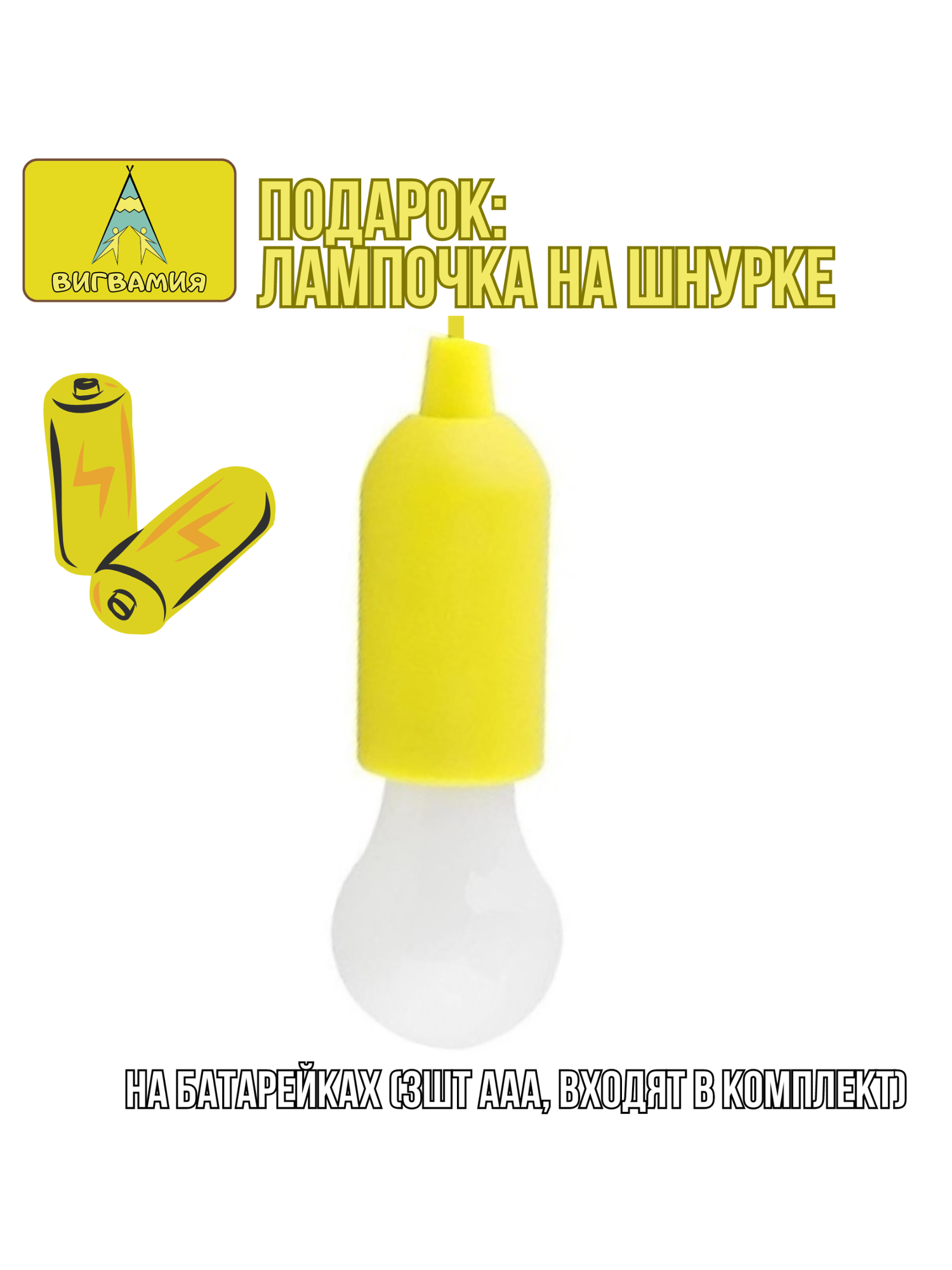 | Подробная комплектация | вигвам с окошком, коврик бомбон, флажки, каркас, ловец снов и лампочка в подарок |