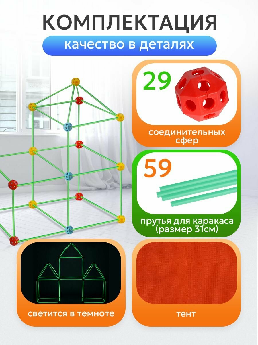 Палатка детская игровая, светится в темноте. Подарок ребенку на день рождения. Артикул 2103363 интересное: