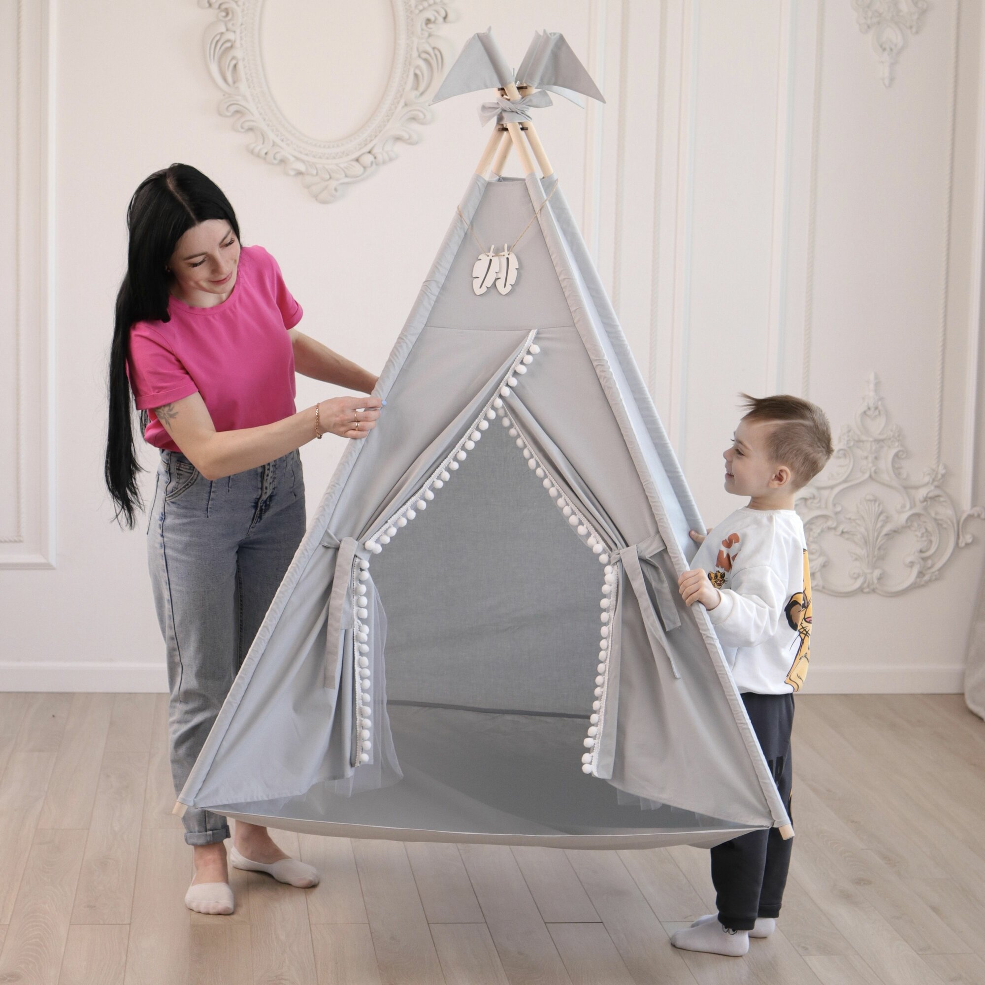 Купить Вигвам Палатка детская игровая , домик для детей , две подушки, корзина для игрушек, кемпинговая лампа, гирлянда