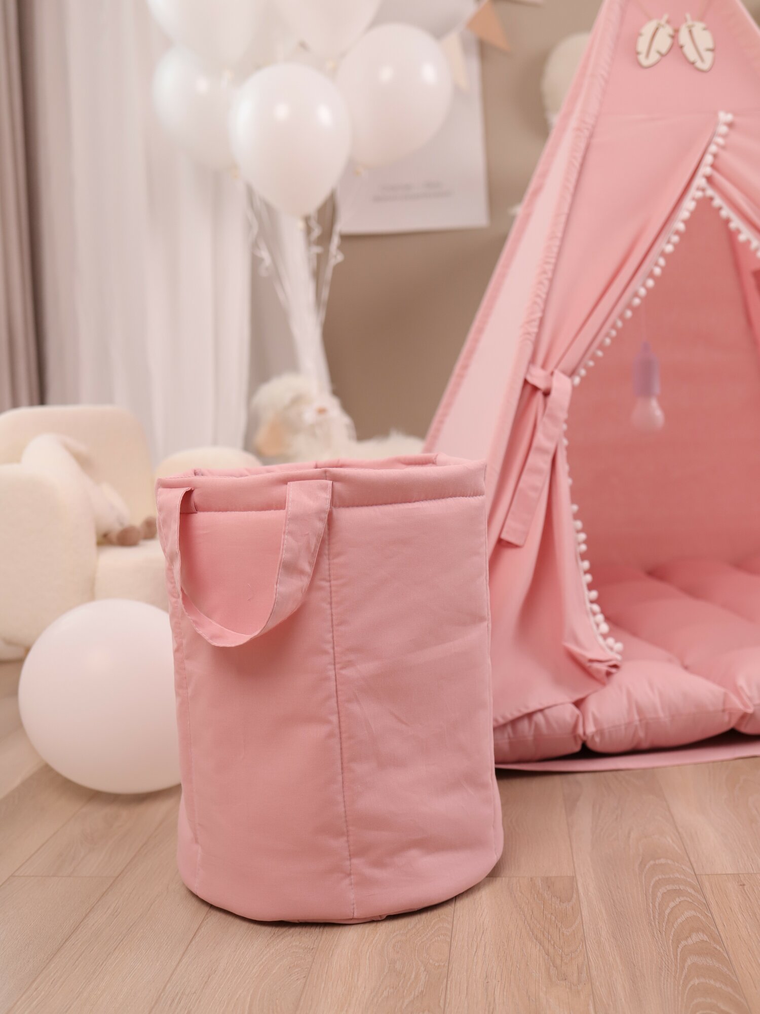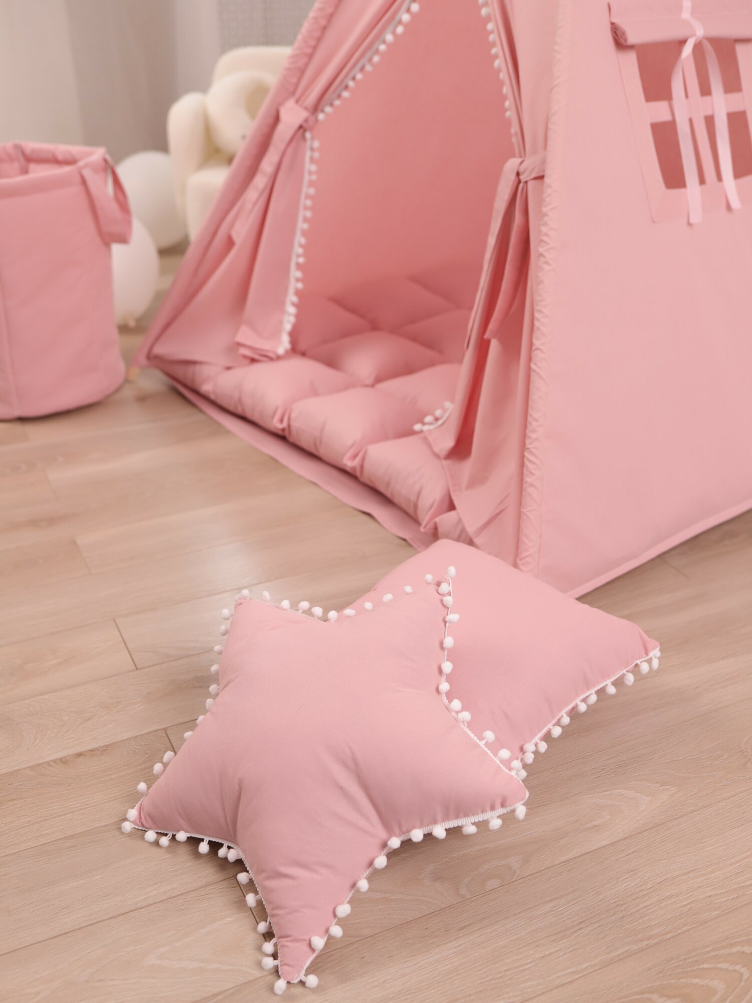 Вигвам Палатка детская игровая , домик для детей , две подушки, корзина для игрушек, кемпинговая лампа, гирлянда