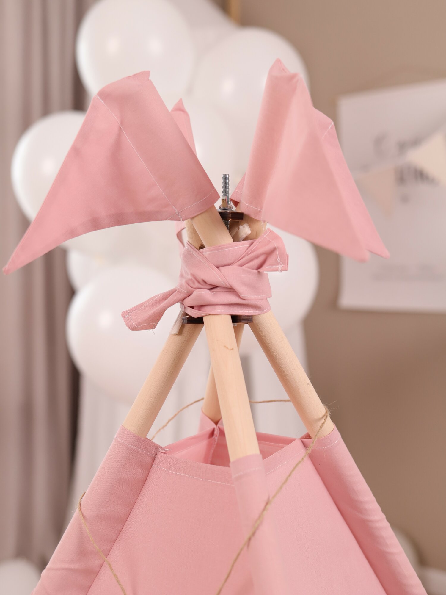 Вигвам Палатка детская игровая , домик для детей , две подушки, корзина для игрушек, кемпинговая лампа, гирлянда из флажков