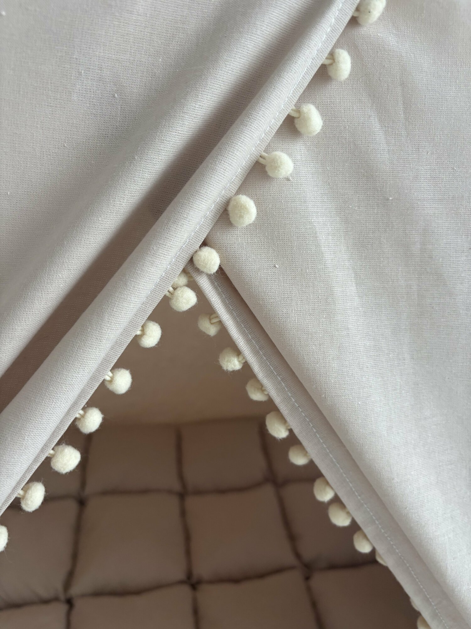 | Комплектация | вигвам - 1 шт; Коврик игровой - 1шт.; Палки 90 см (содеинение саморез) - 8шт.; Подушка - 1 шт; декор звезды-3 шт; перья на верх- 4 шт; веревка-1 шт; инструкция - 1 шт; крепеж - 4 шт; система антискладывания - 1 шт |