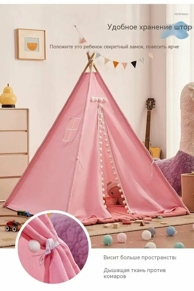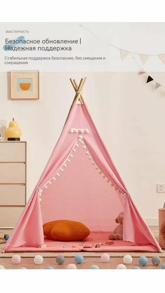 Вигвам для детей, деревянный каркас, мягкий, для улицы и дома, желтый интересное: