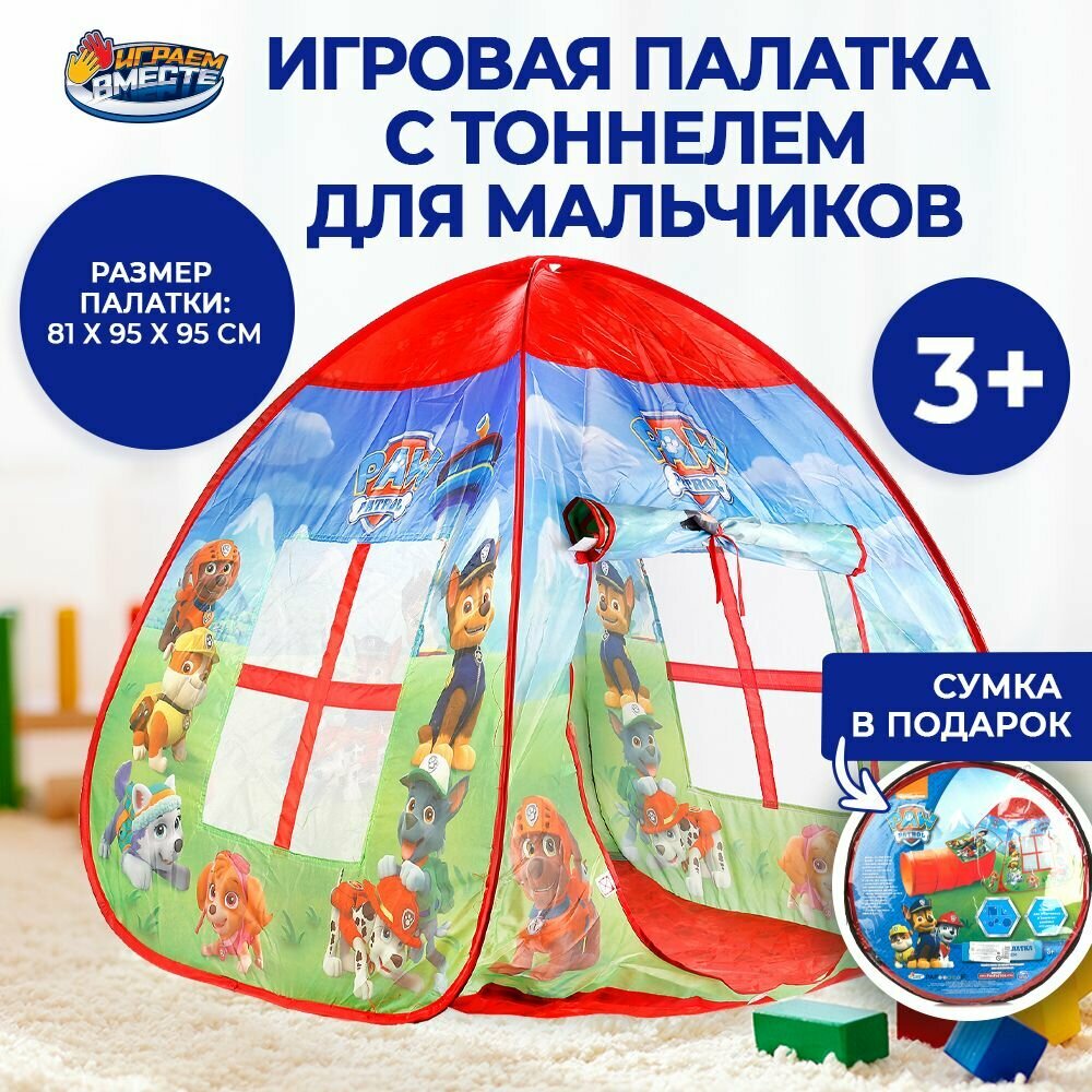 Купить Палатка игровая с тоннелем GFA-TONPP01-R, "Щенячий патруль", каркас, текстиль, 81х95х95см