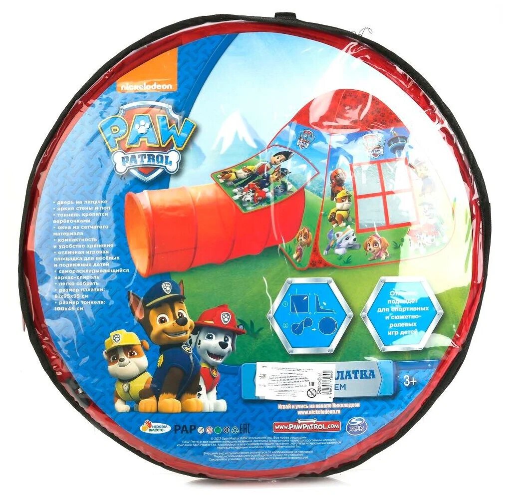 Палатка игровая с тоннелем GFA-TONPP01-R, "Щенячий патруль", каркас, текстиль, 81х95х95см интересное: