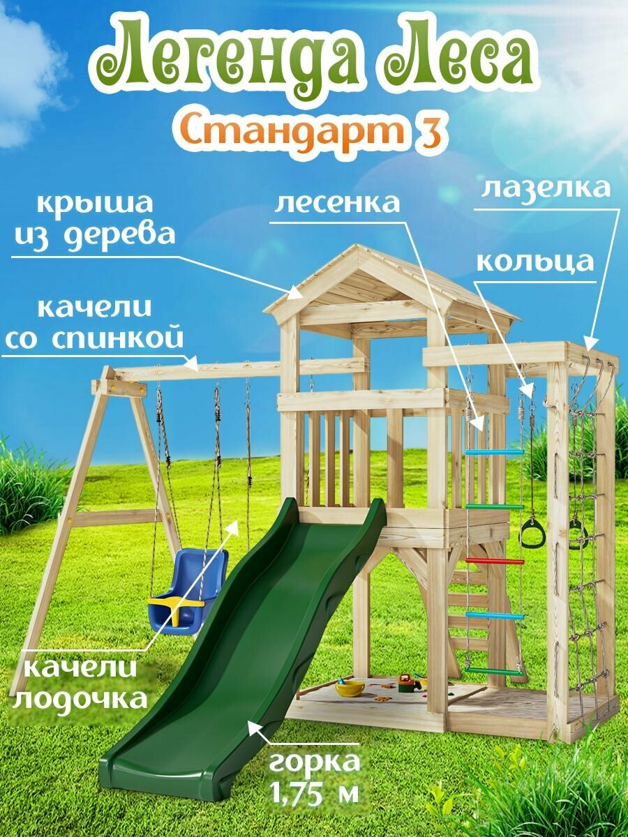 Купить Детская площадка легенда леса стандарт 3 с лазелкой и горкой 1,75м для дачи / Игровой комплекс детский для улицы