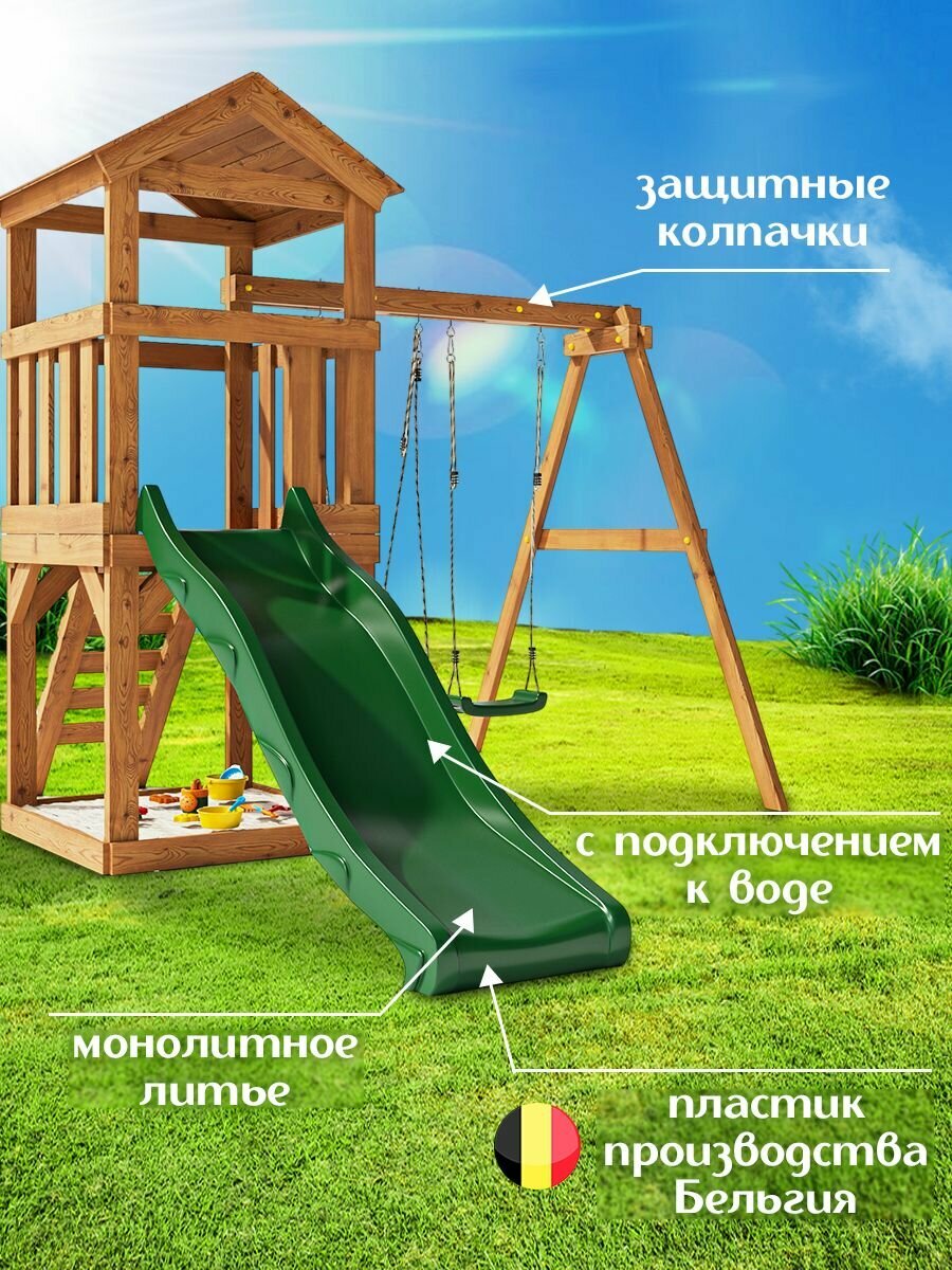 Купить Детская площадка легенда леса стандарт 1+ Золотистый Тик с качелями и горкой 2,2м для улицы / Игровой комплекс детский