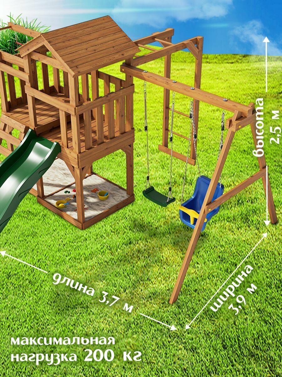 Детская площадка легенда леса стандарт 1+ Золотистый Тик с качелями и горкой 2,2м для улицы / Игровой комплекс детский
