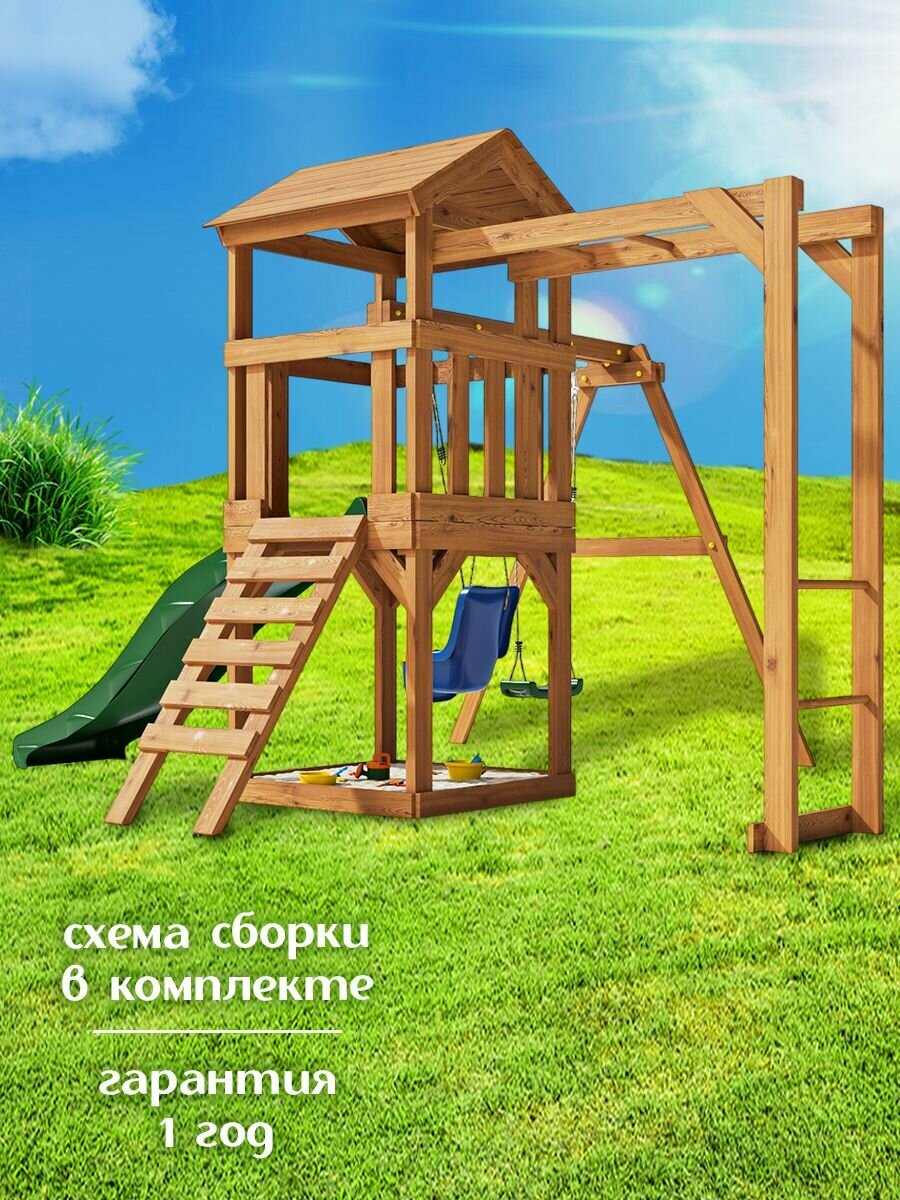 Детская площадка легенда леса стандарт 1+ Золотистый Тик с качелями и горкой 2,2м для улицы / Игровой комплекс детский