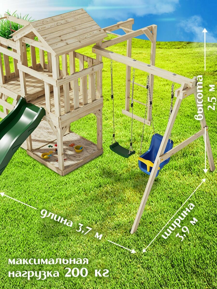 Детская площадка легенда леса стандарт 1+ Золотистый Тик с качелями и горкой 2,2м для улицы / Игровой комплекс детский