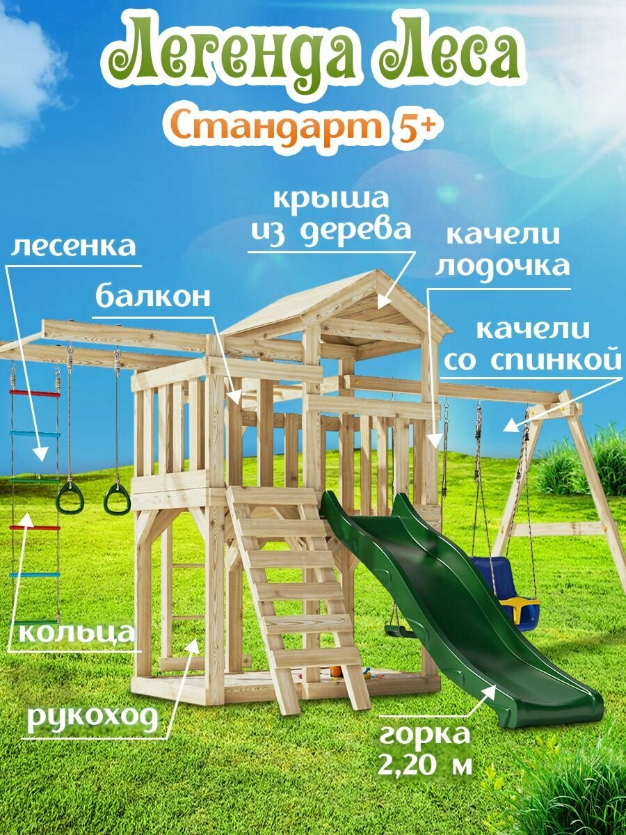 Детская площадка легенда леса стандарт 2+ с рукоходом, качелями и горкой 2,2м для улицы / Игровой комплекс для дачи