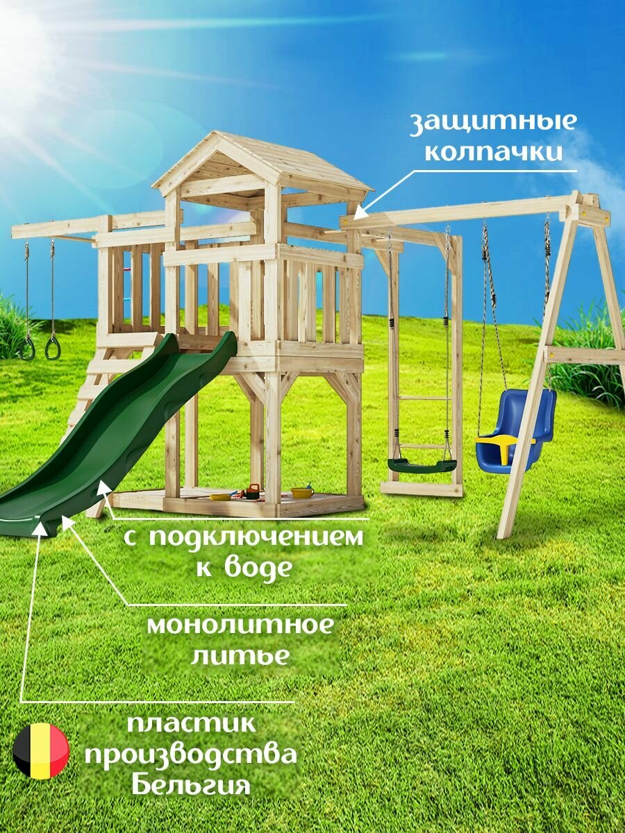 Детская площадка легенда леса стандарт 1+ Золотистый Тик с качелями и горкой 2,2м для улицы / Игровой комплекс детский