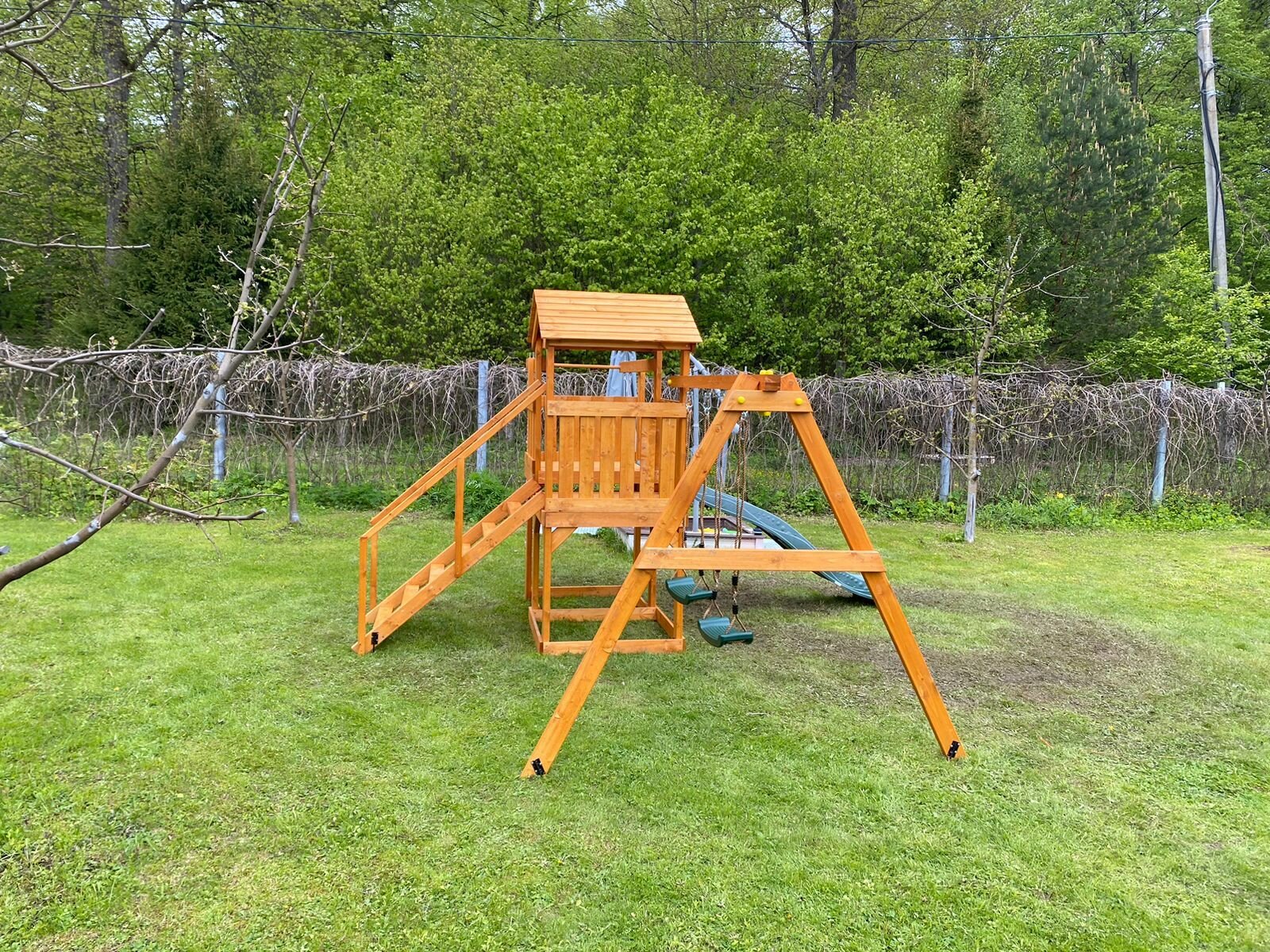 Детская площадка легенда леса стандарт 1+ Золотистый Тик с качелями и горкой 2,2м для улицы / Игровой комплекс детский