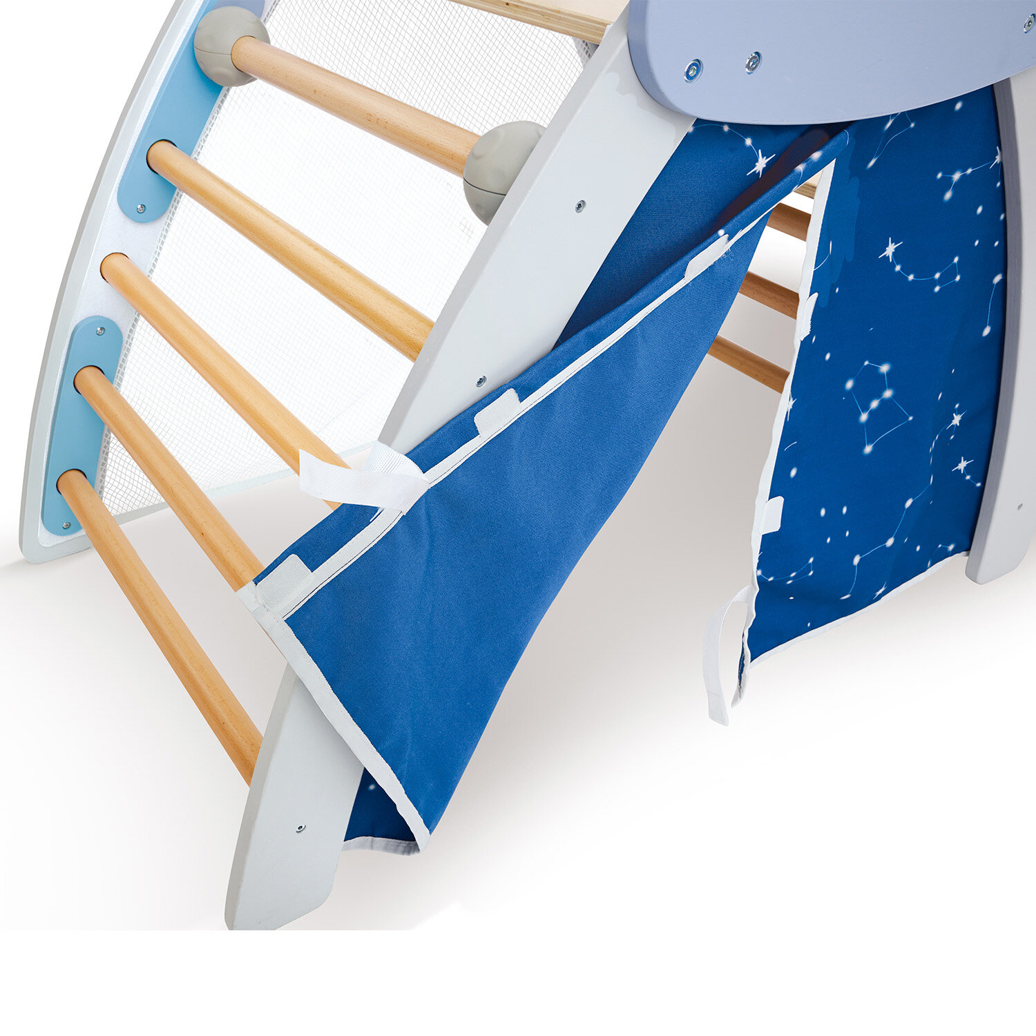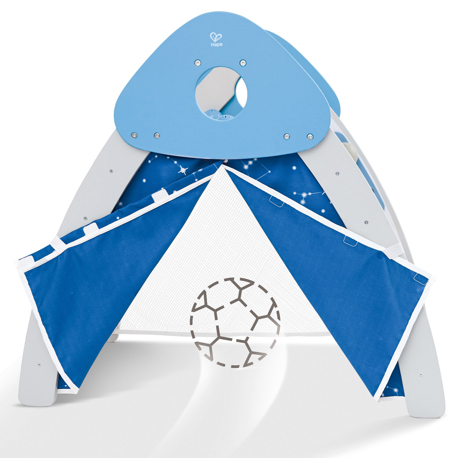 | Комплектация | двустороння горка (одна сторона - гладкая, другая - с выпирающими формами для лазания), палатка-лесенка, шторка для палатки, сетка |