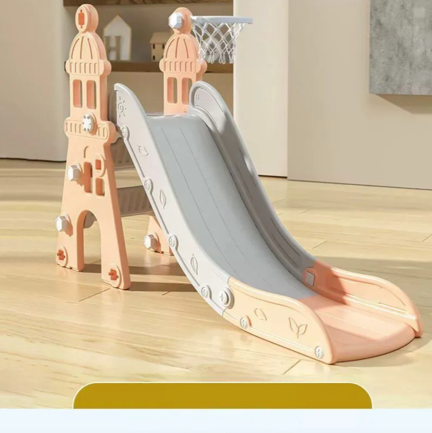 Игровой набор Xiaomengbao "Веселый замок", с горкой и баскетбольным кольцом, розовый