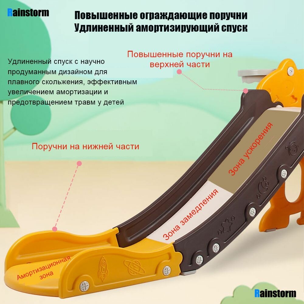 Горка для спуска DIPES, с баскетбольным кольцом, для помещений, светло-желтая